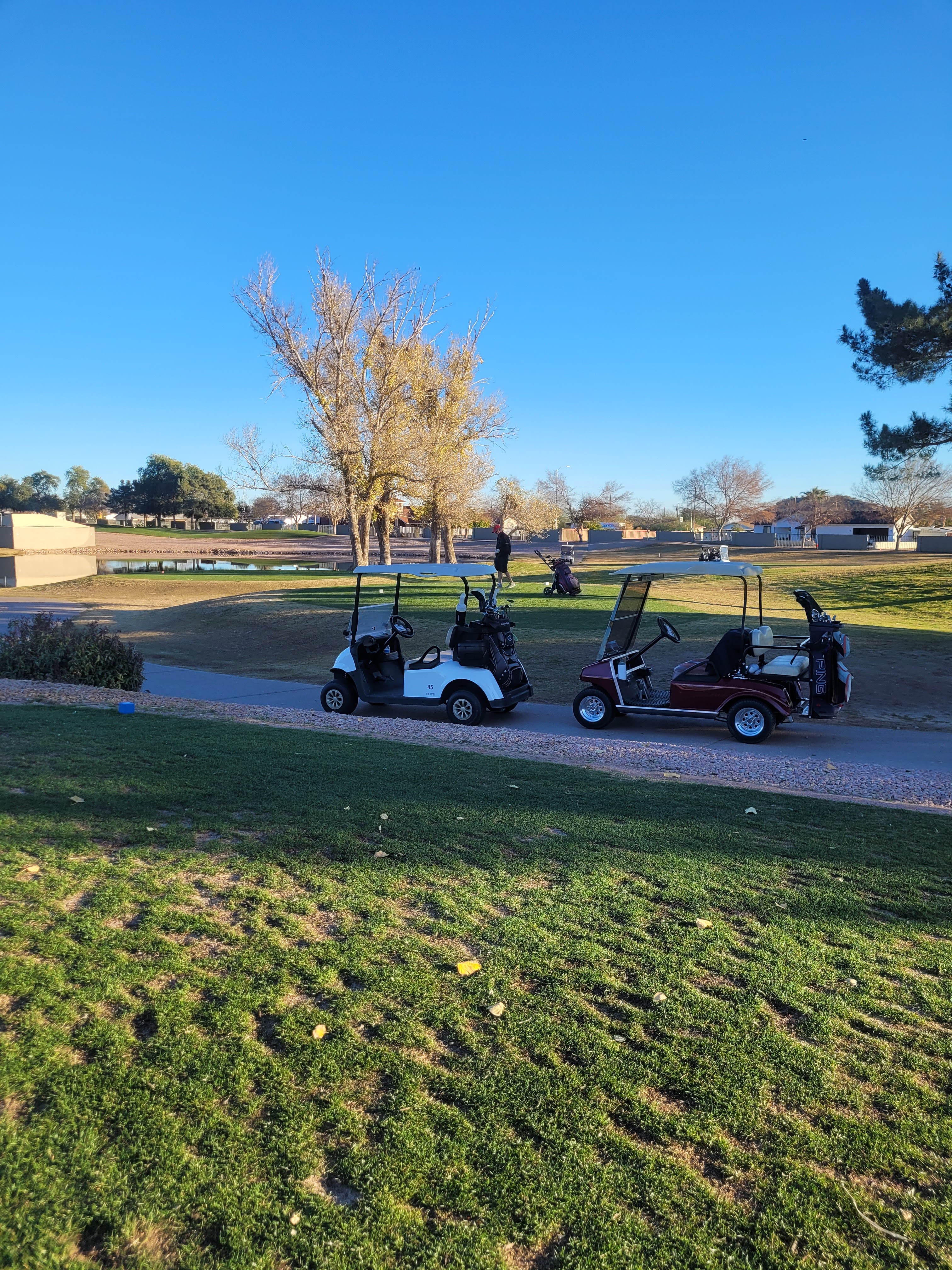 We all arrive on time and 1 to 1.5 hr frost delay. Oh well ! There literally was white ice on the greens. First time ever according to the club house.