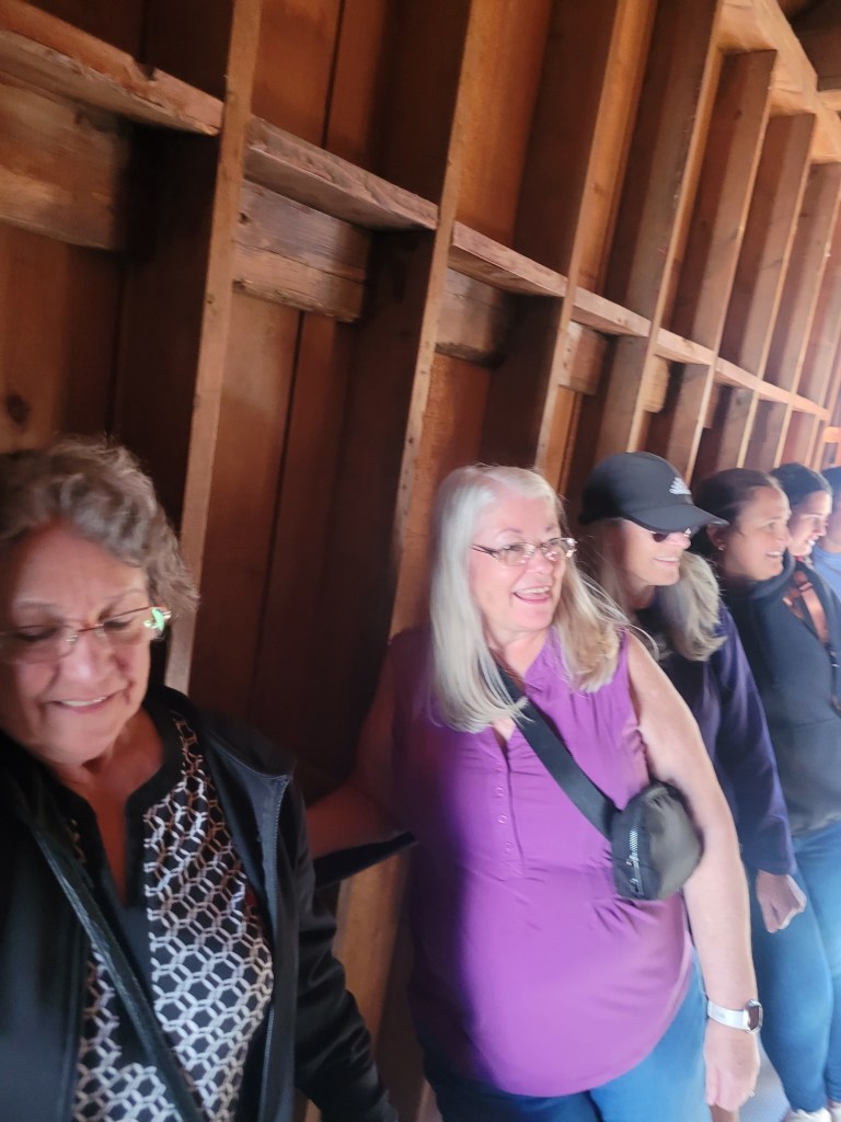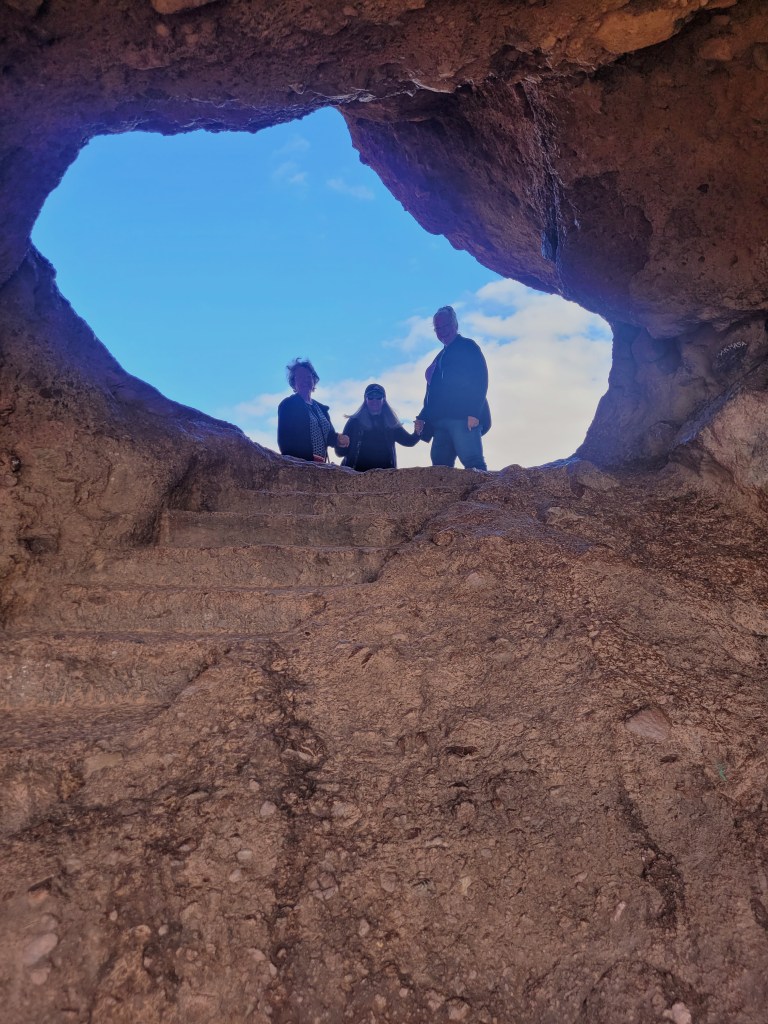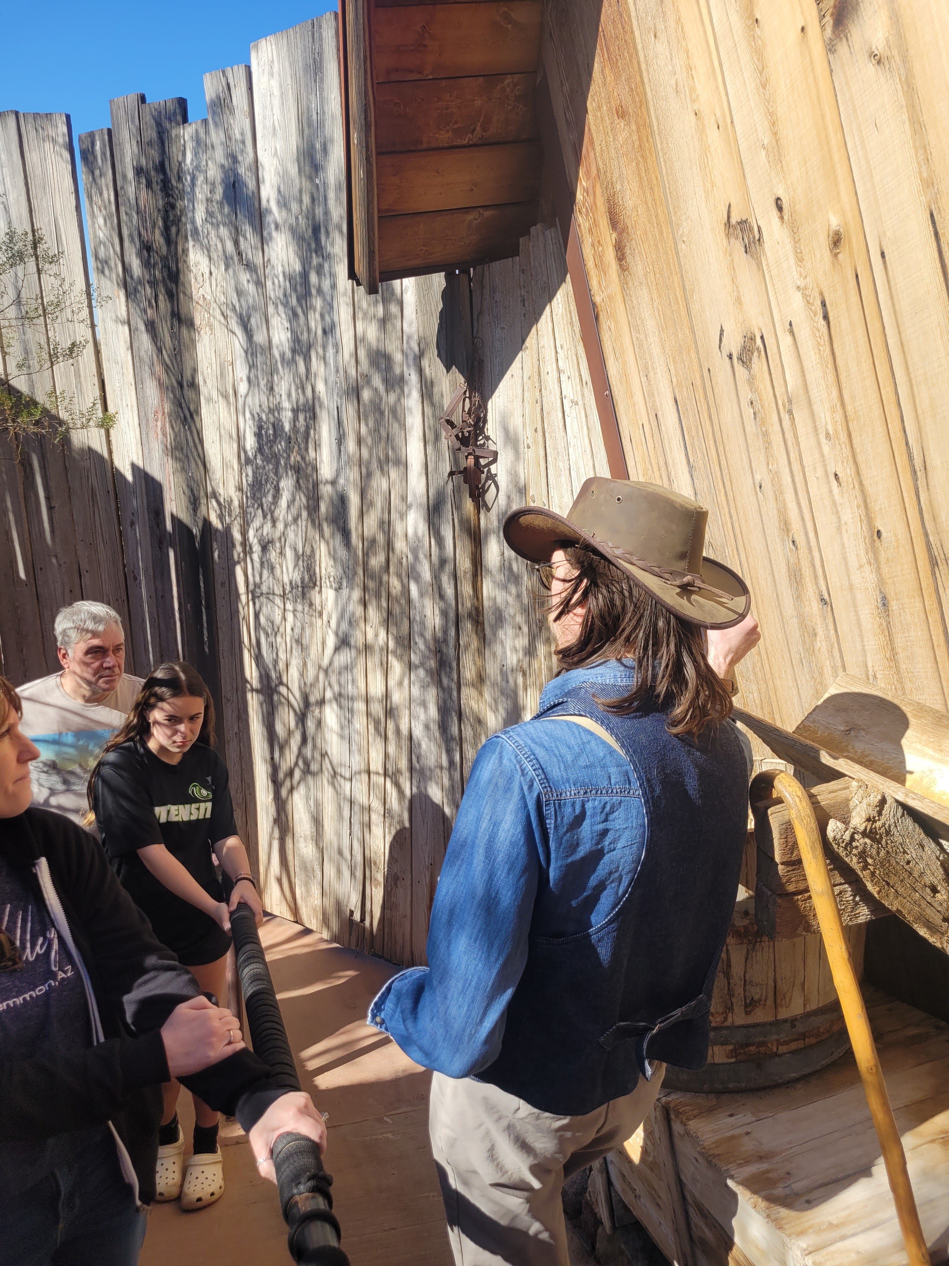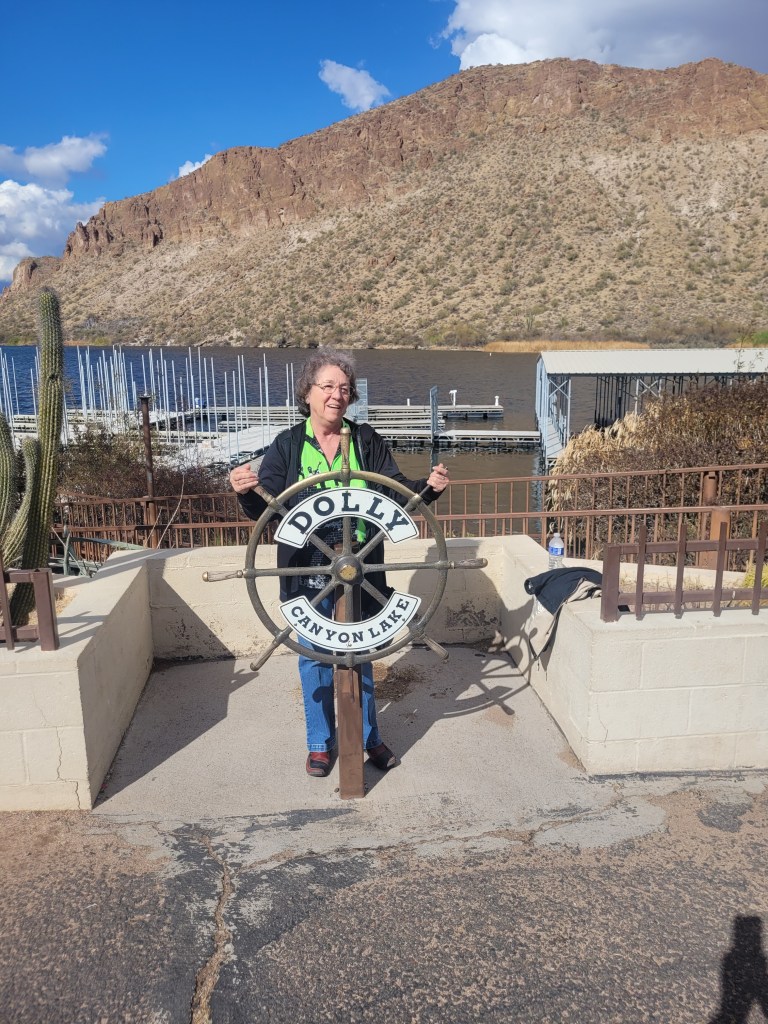 Today’s plan was the Apache Trail. In the car and we headed out. First stop was the Goldfield Town an historical old gold mine tourist place. I love this place. We stopped in the shops. We looked in the general store. We visited the Mystery House, which is a wacky tilted house tour. It was a blast. Jackie & Mary were lucky enough to “volunteer” which was fun seeing them struggle with the circumstance.