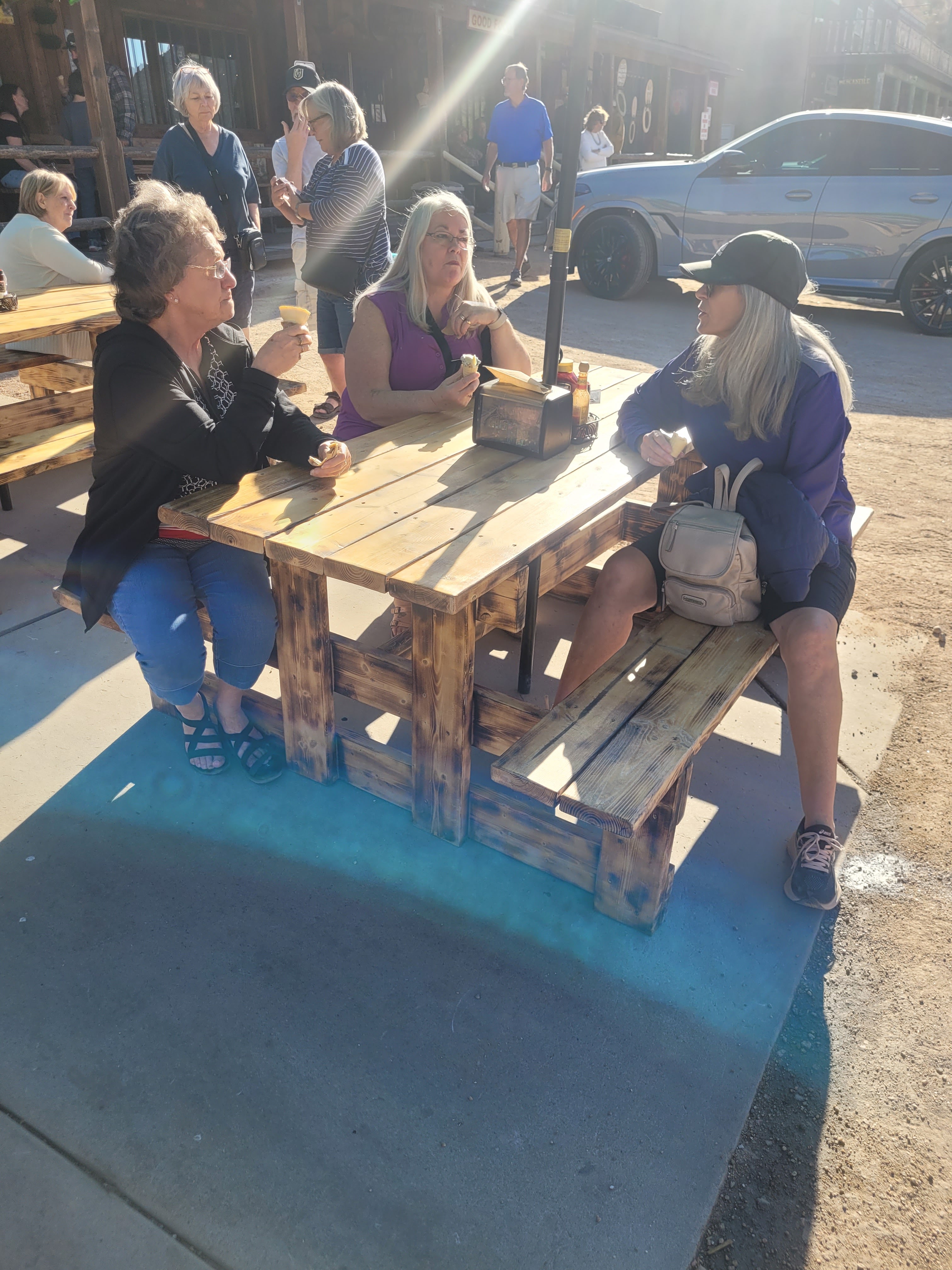 We stopped at Tortilla Flats and had a wonderful burger on the patio listening to an awesome band. Some picture taking , ice cream and then headed to Canyon Lake.