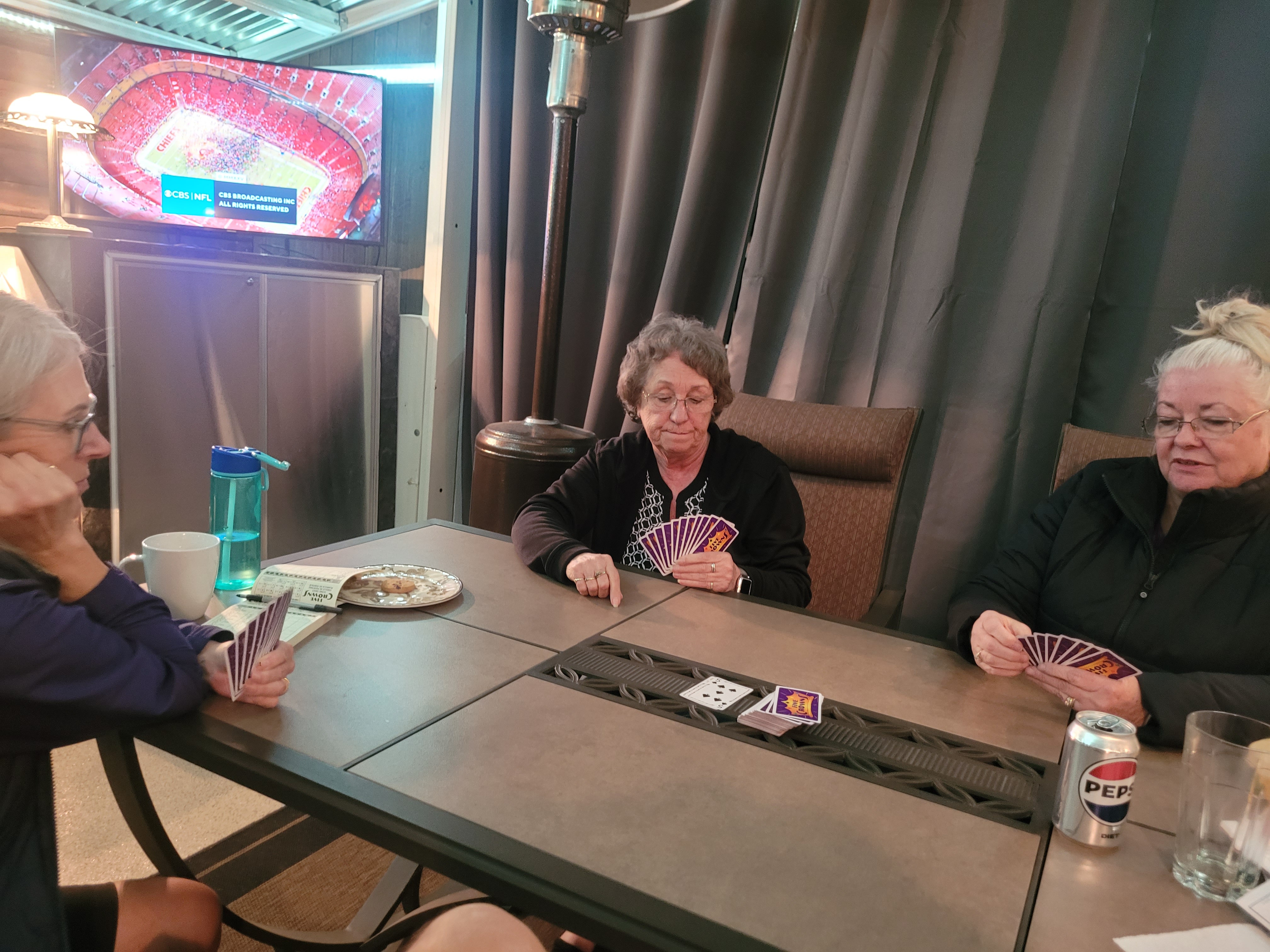 Games night without me winning a game. Darlene and Mary were the big wieners. All the while watching the Chiefs win !! And Taylor Swift !
