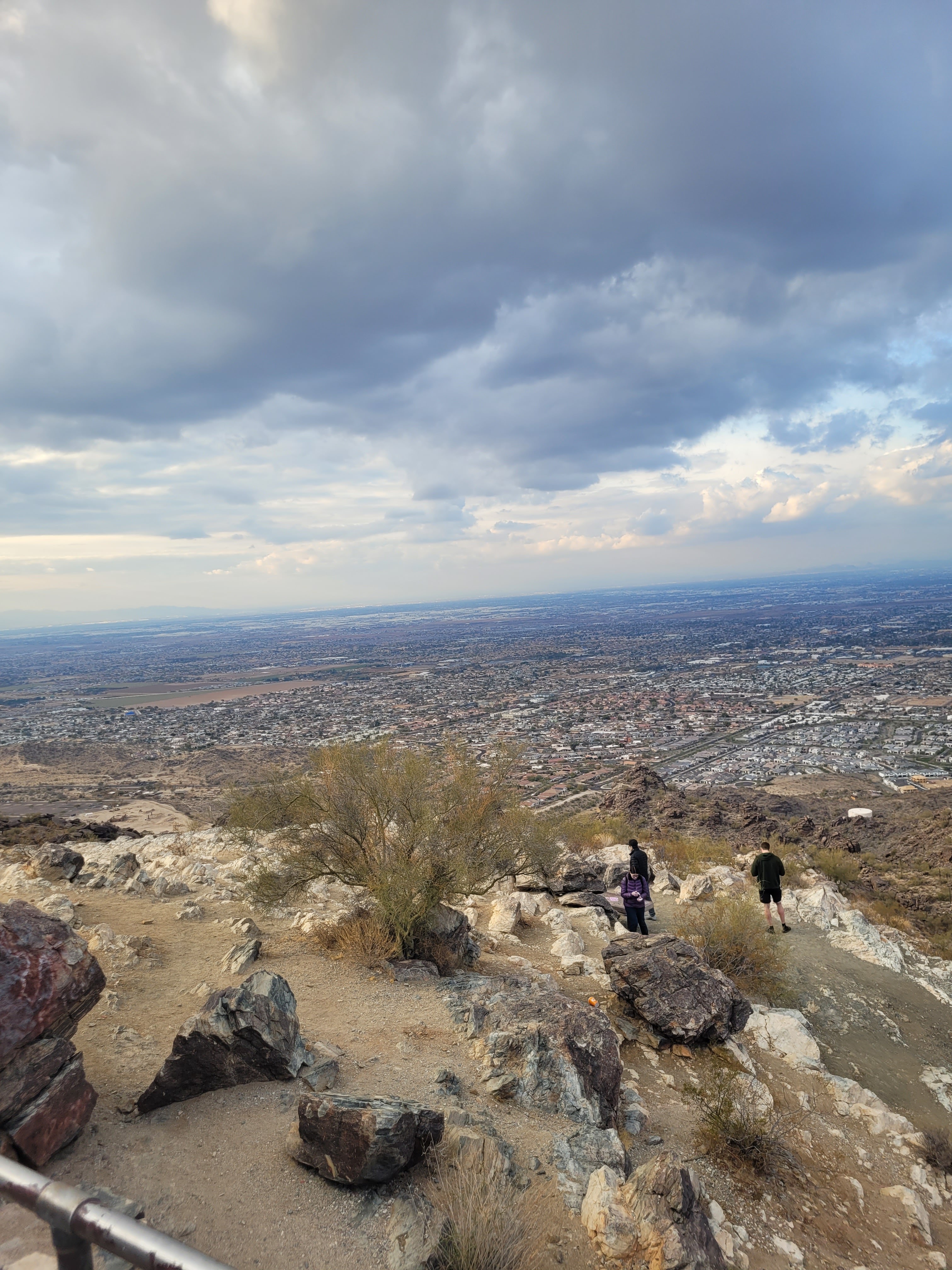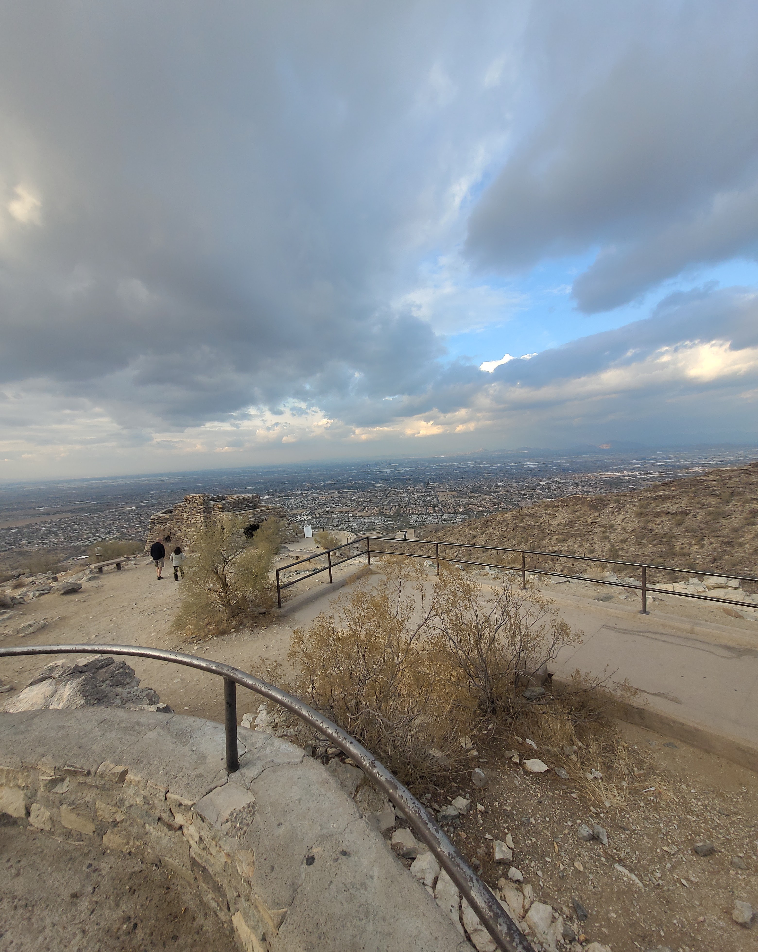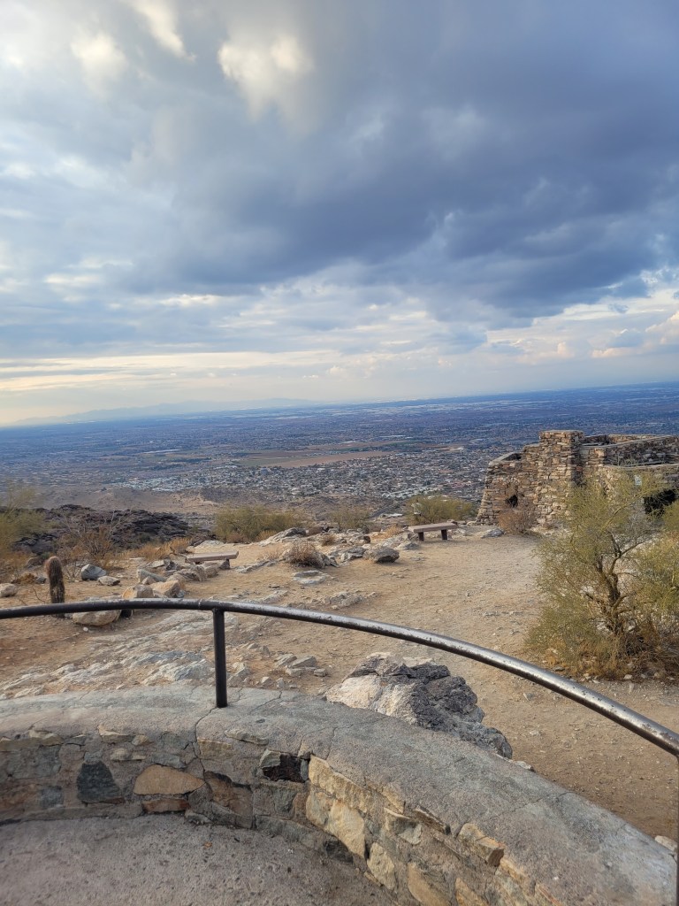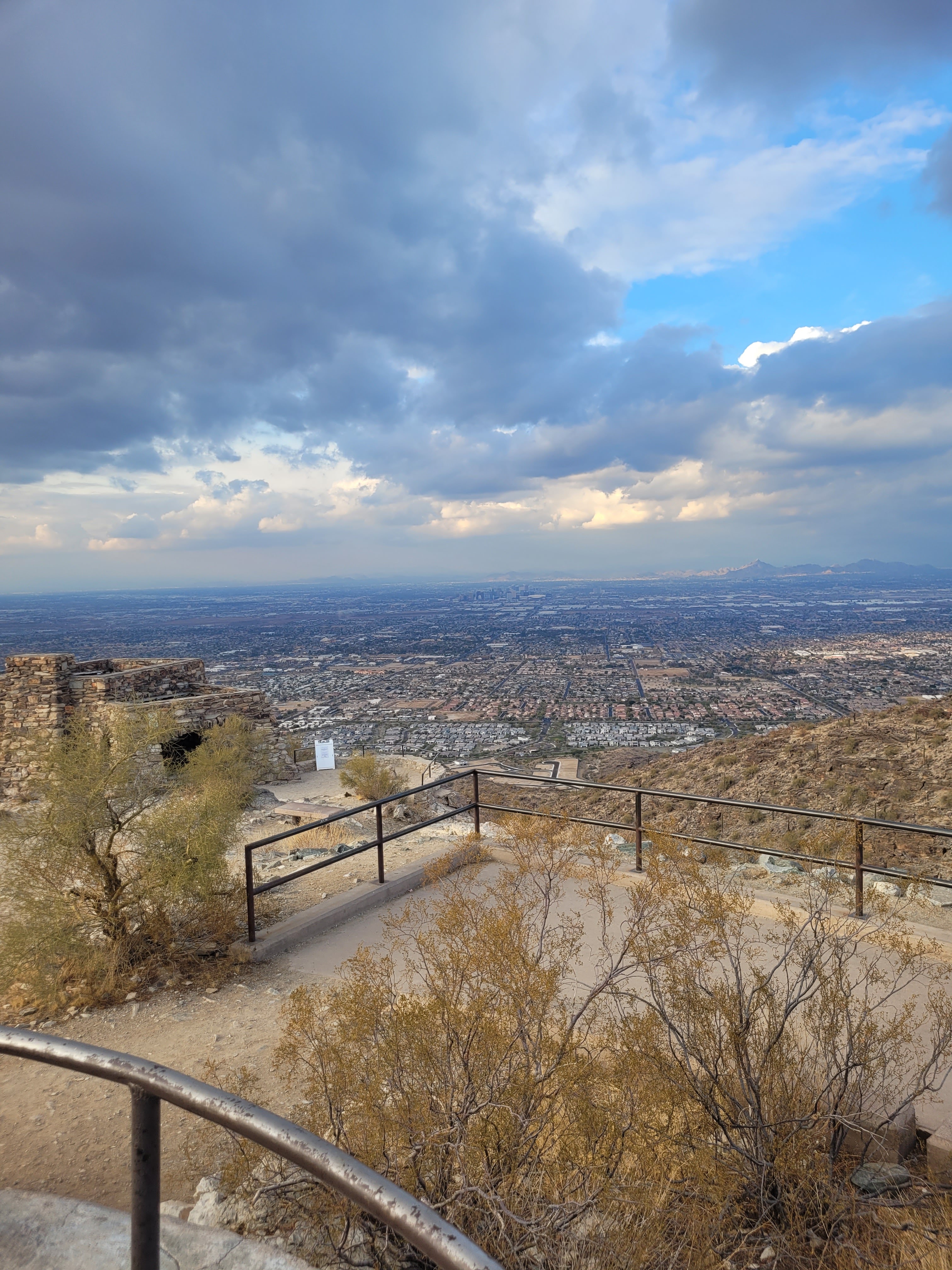 After hiking we head up to Dobbin’s Point which is unbelievable. The highest peak with a road to over look Greater Phoenix. Odd to think we see 50% more people than the whole of Alberta just below us. If it had been clear out you can 50 miles plus. Not quite today though. It is a super windy road to get to this highest spot to view Phoenix. Wonderful fun.