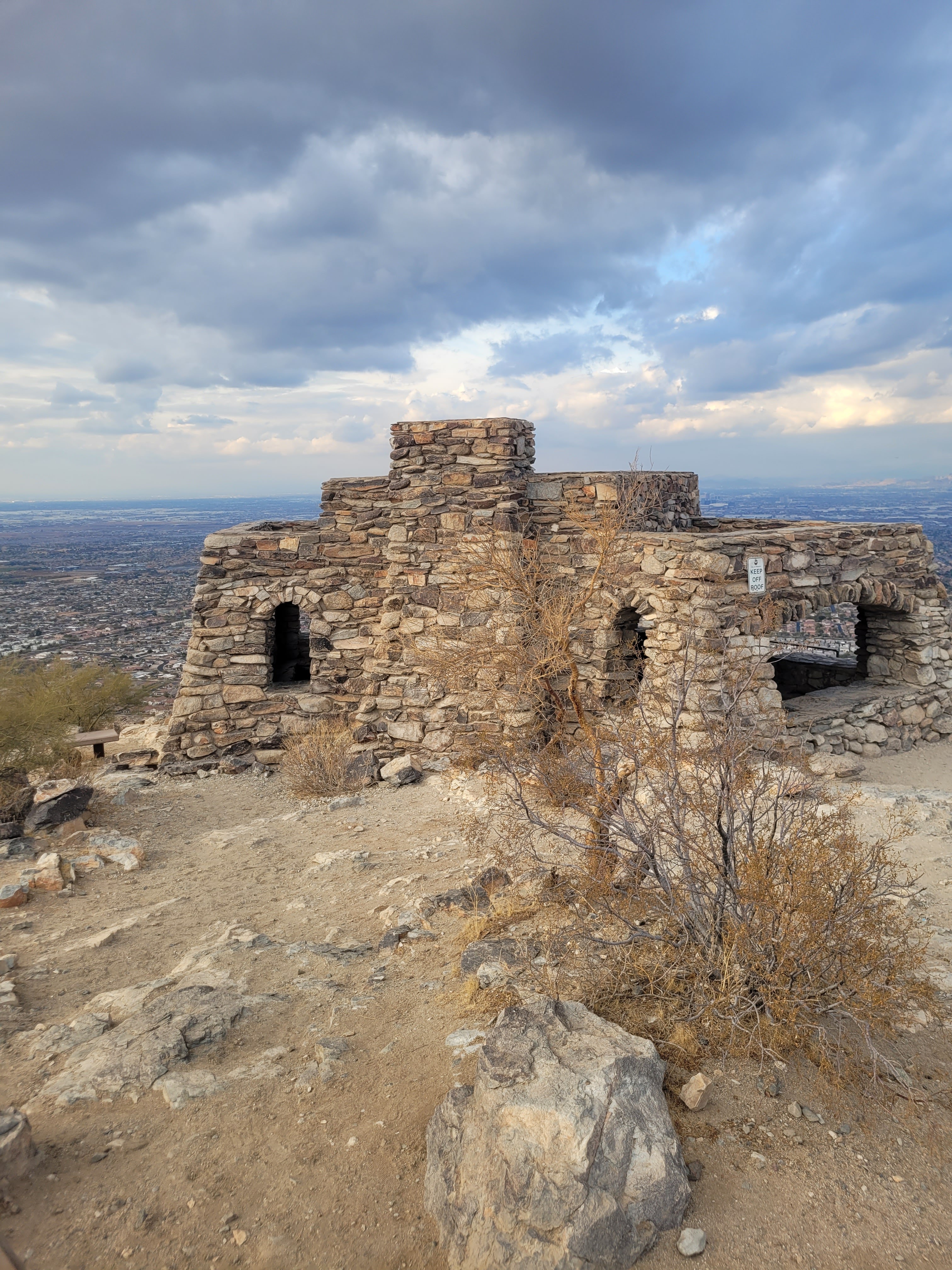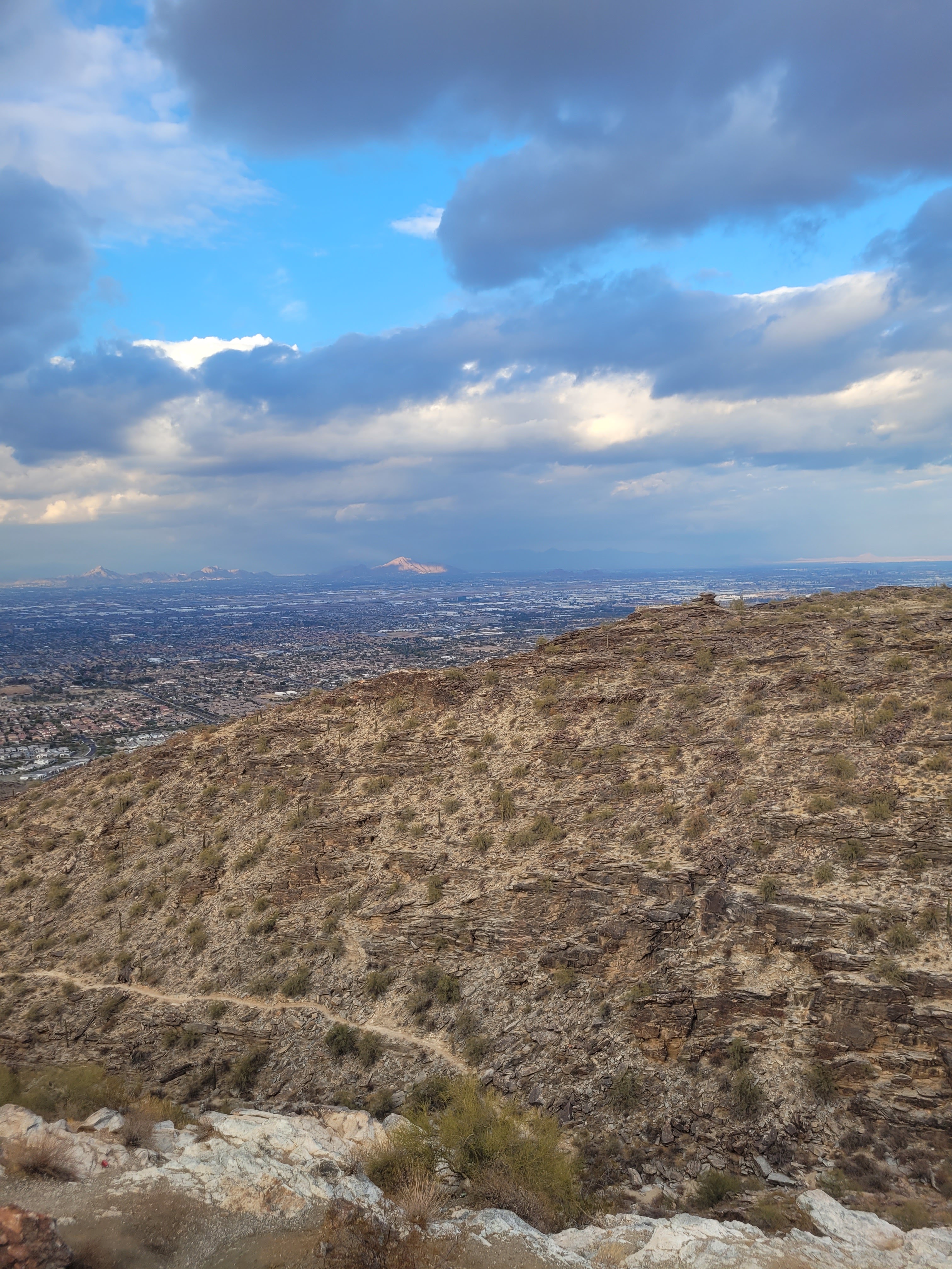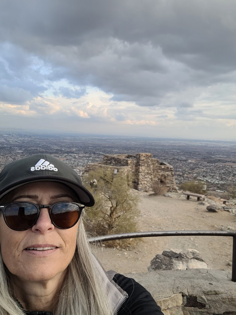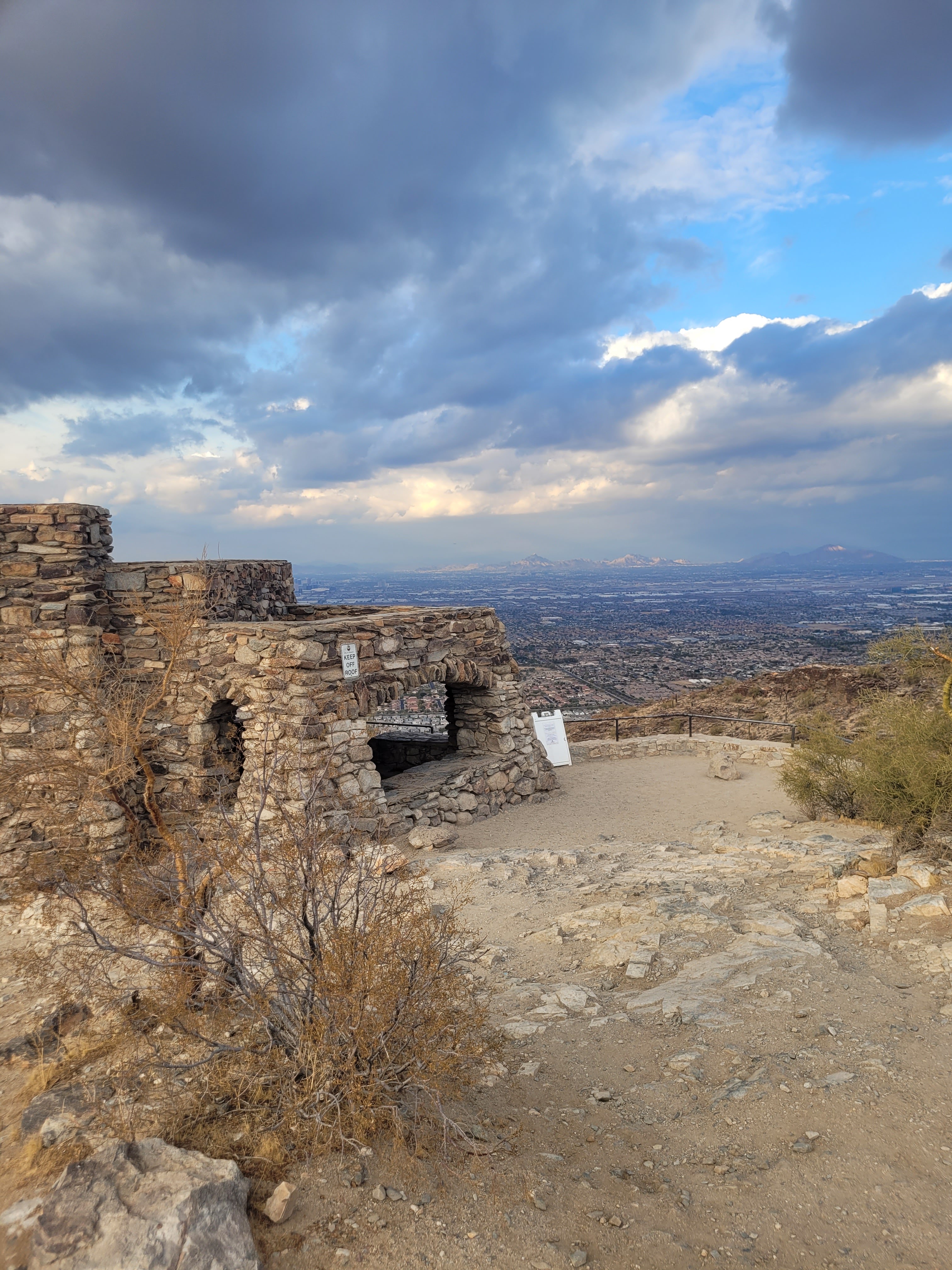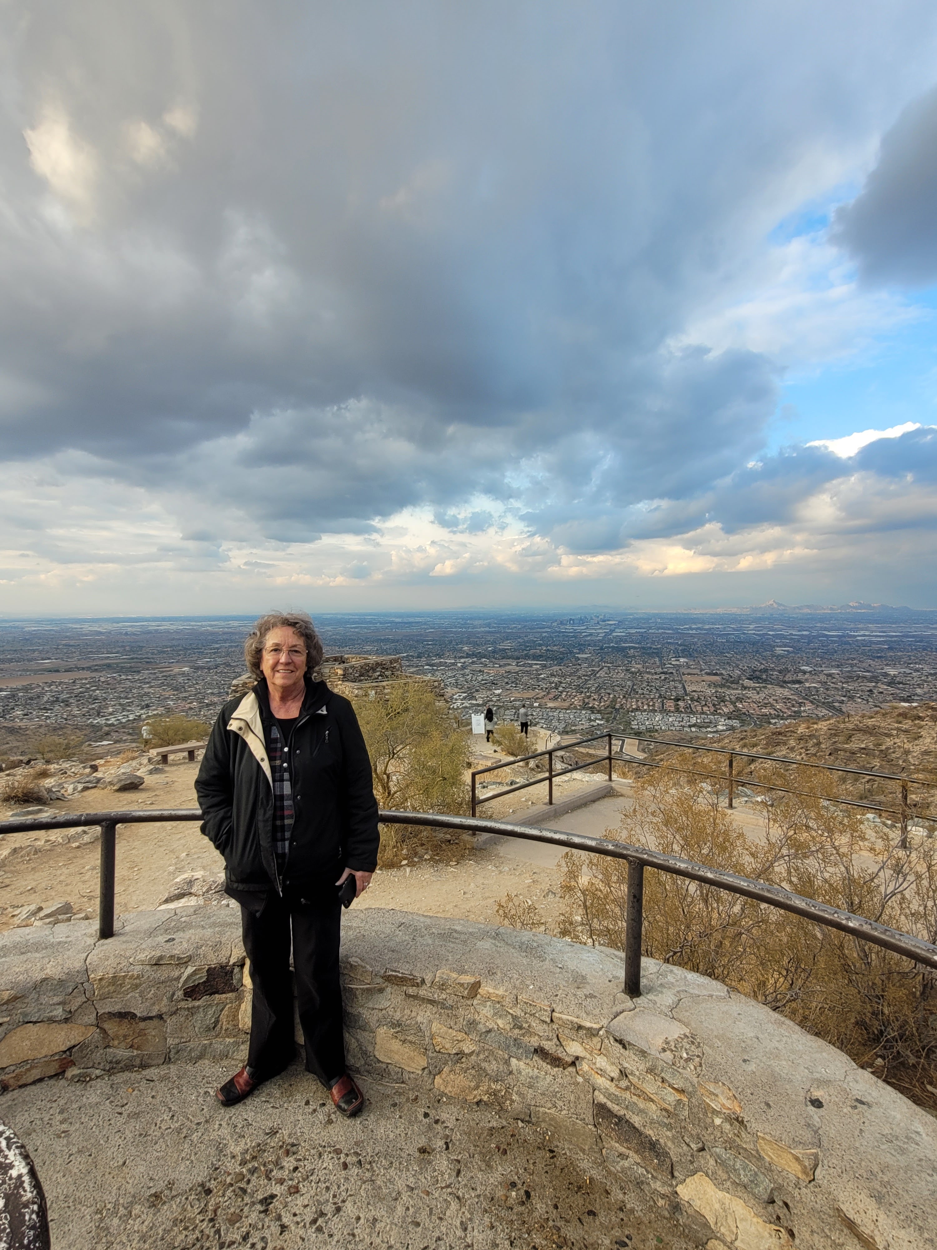 After hiking we head up to Dobbin’s Point which is unbelievable. The highest peak with a road to over look Greater Phoenix. Odd to think we see 50% more people than the whole of Alberta just below us. If it had been clear out you can 50 miles plus. Not quite today though. It is a super windy road to get to this highest spot to view Phoenix. Wonderful fun.