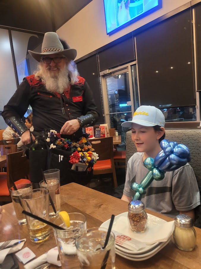 They had an older man making balloon figures. This guy for a good 5 minutes told Dad joke after Dad joke. He was amazingly punny.