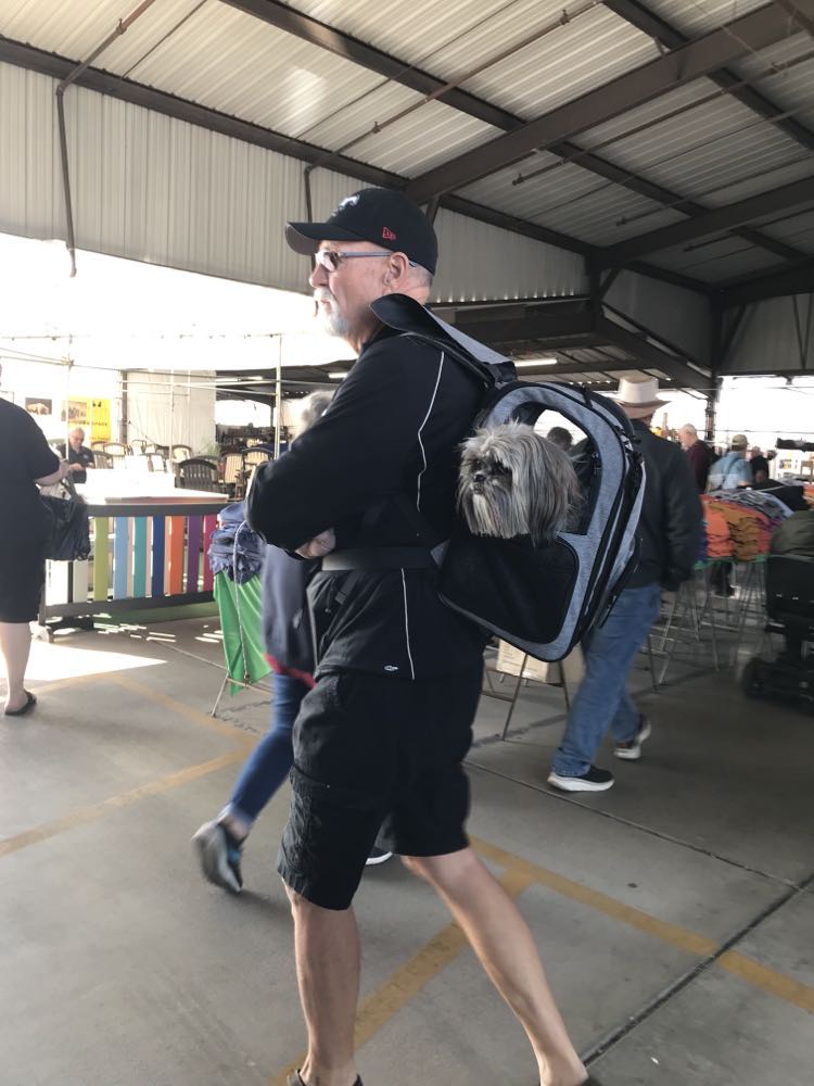 We walked around it all and I would say about 3 hours or so. Both Darlene and Mary carried out bags so mission accomplished. Even Daisy enjoyed the ride up and down the halls.