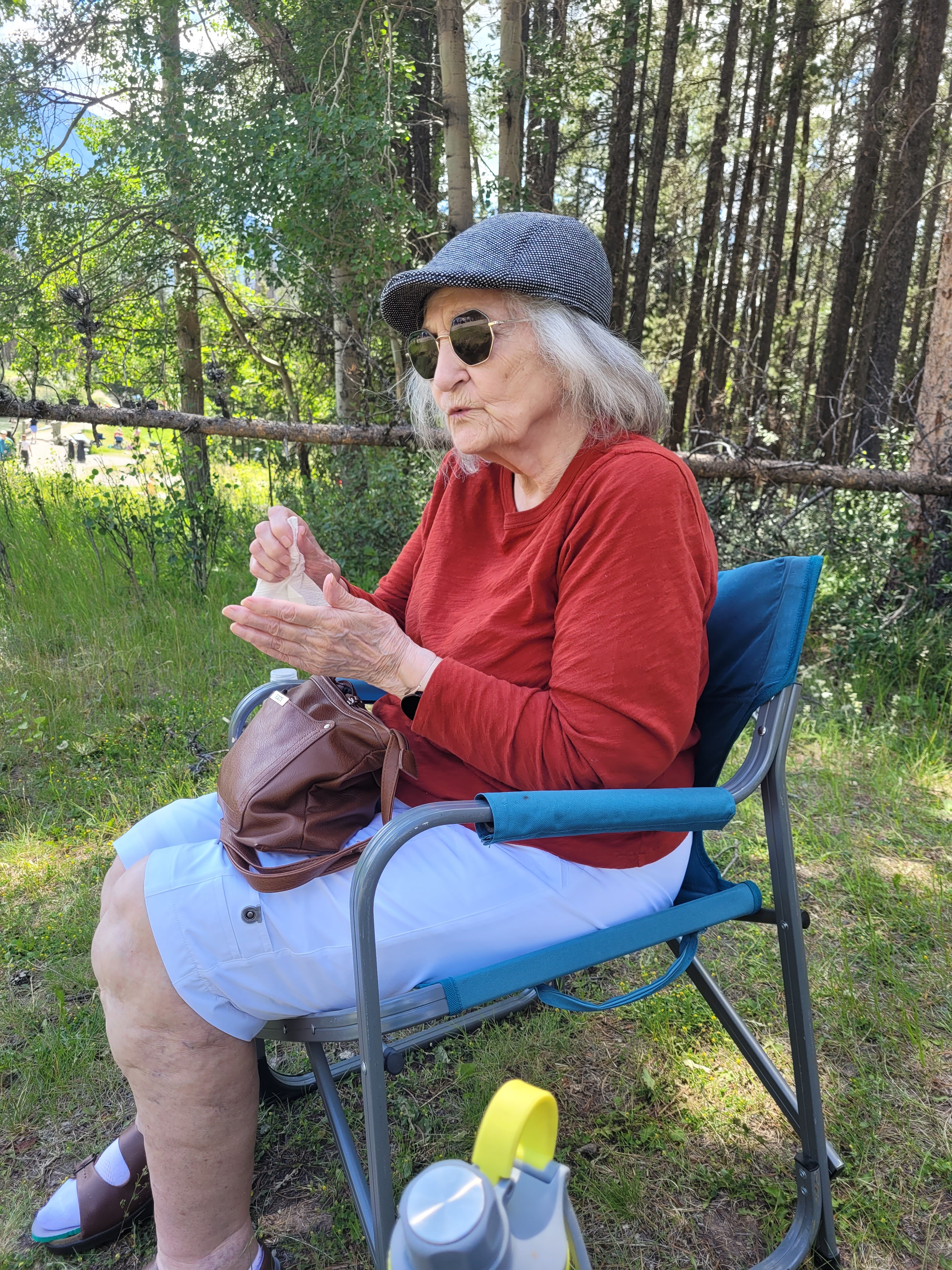 I found a spot just across from the beach in the shade under the trees close to the parking lot. Great as Audrey has real trouble walking even the shortest of distances.