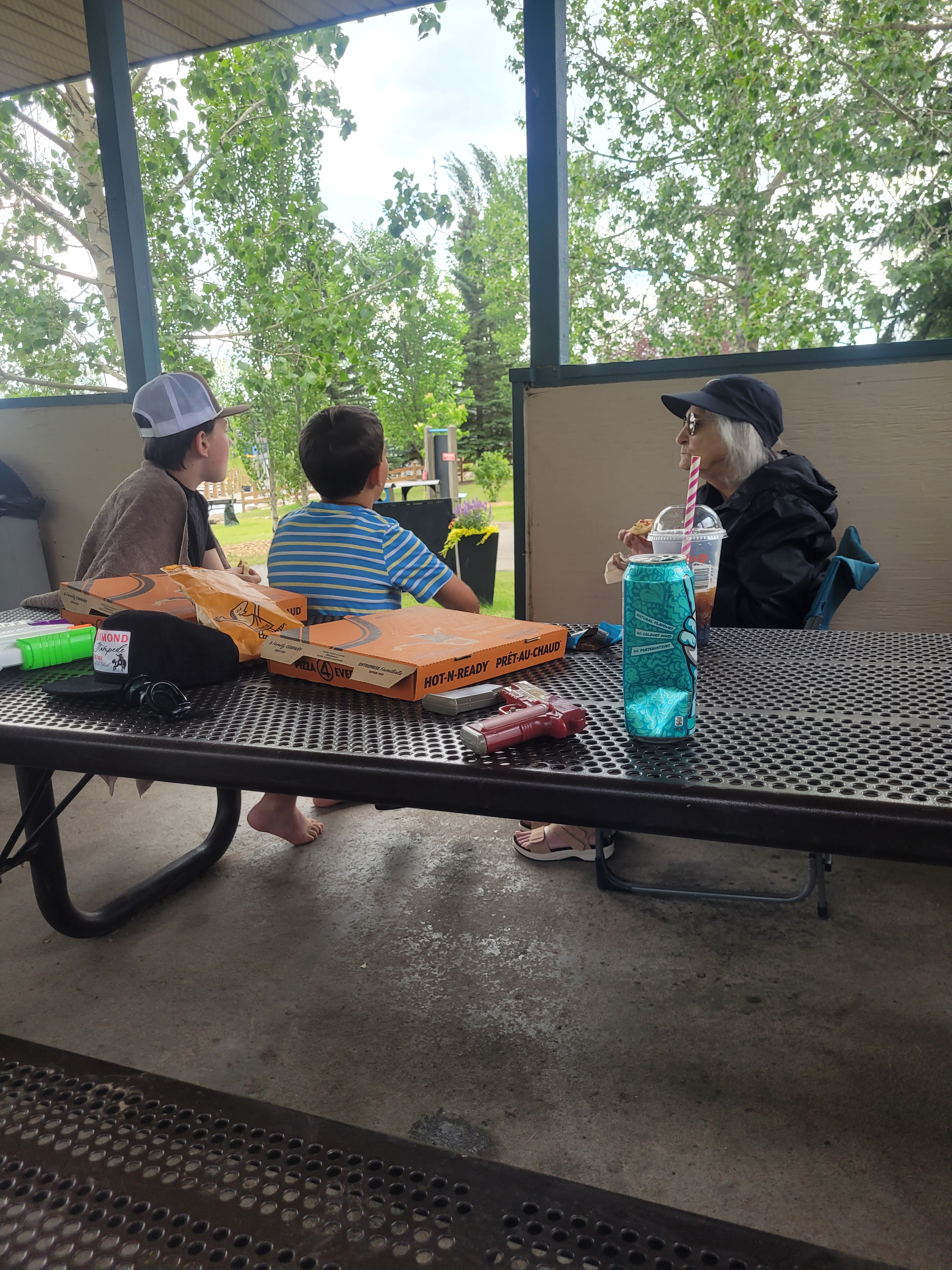We had a good night with pizza from Caesars. We enjoyed a wonderful time at the lake. We also had ice cream cones from Dairy Queen. I great day.