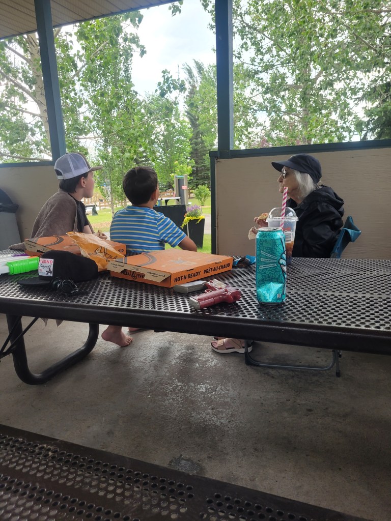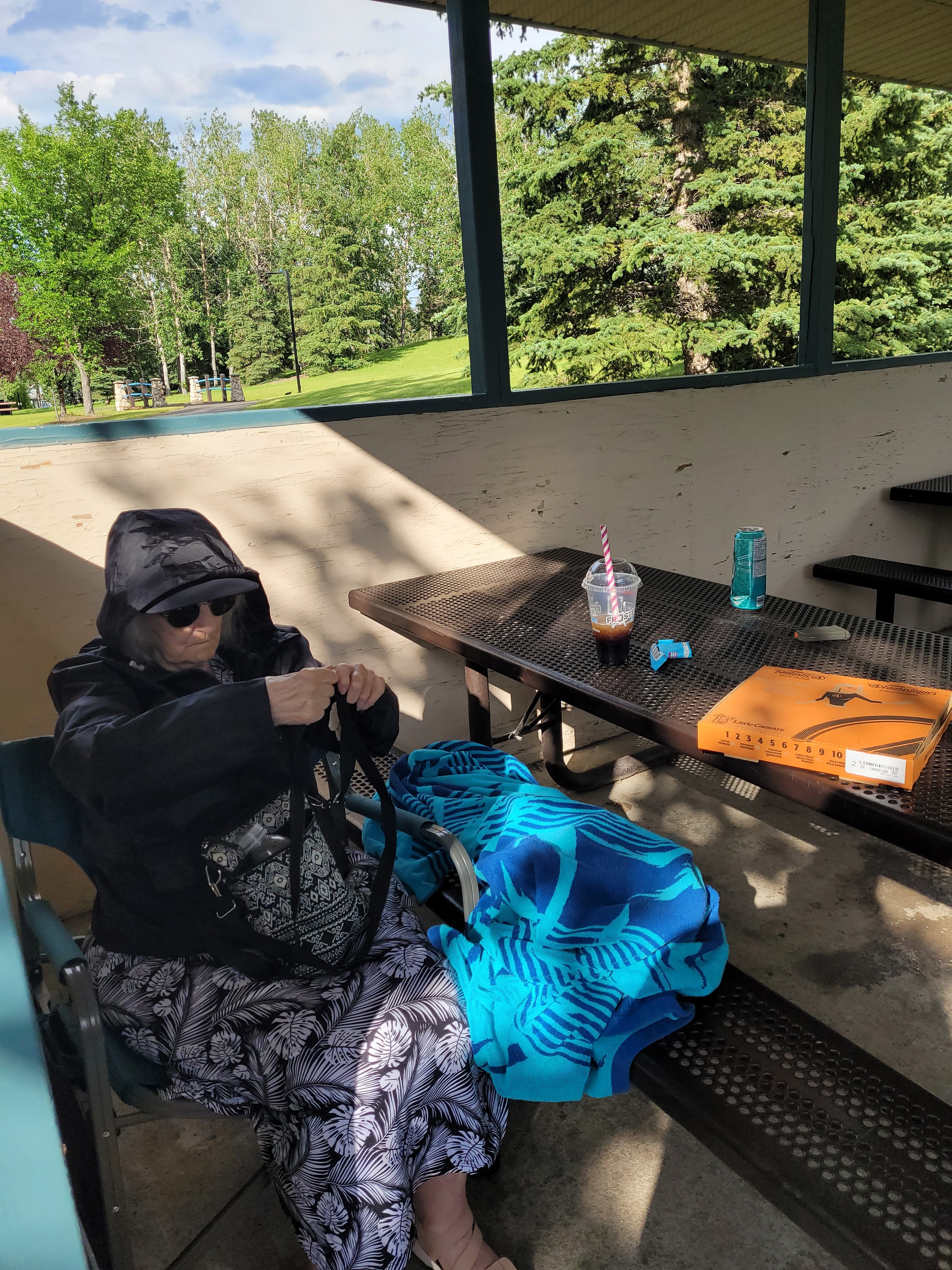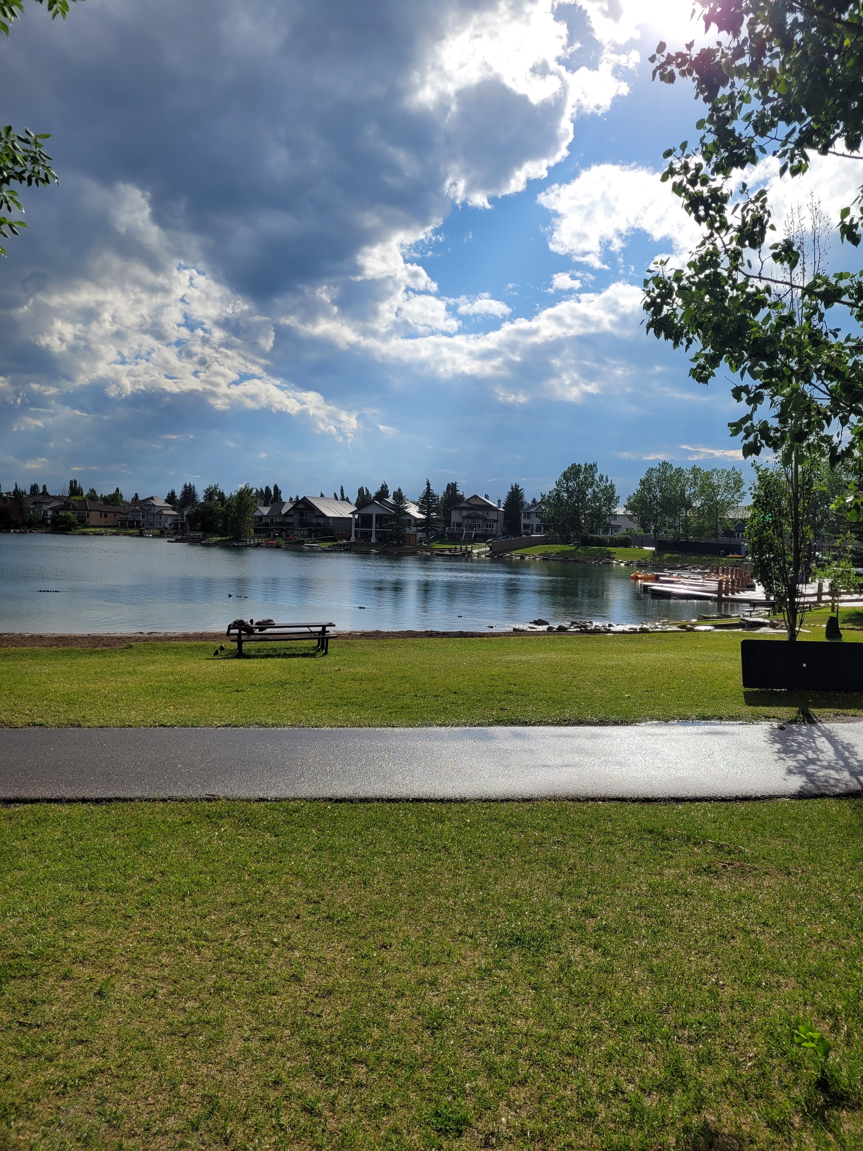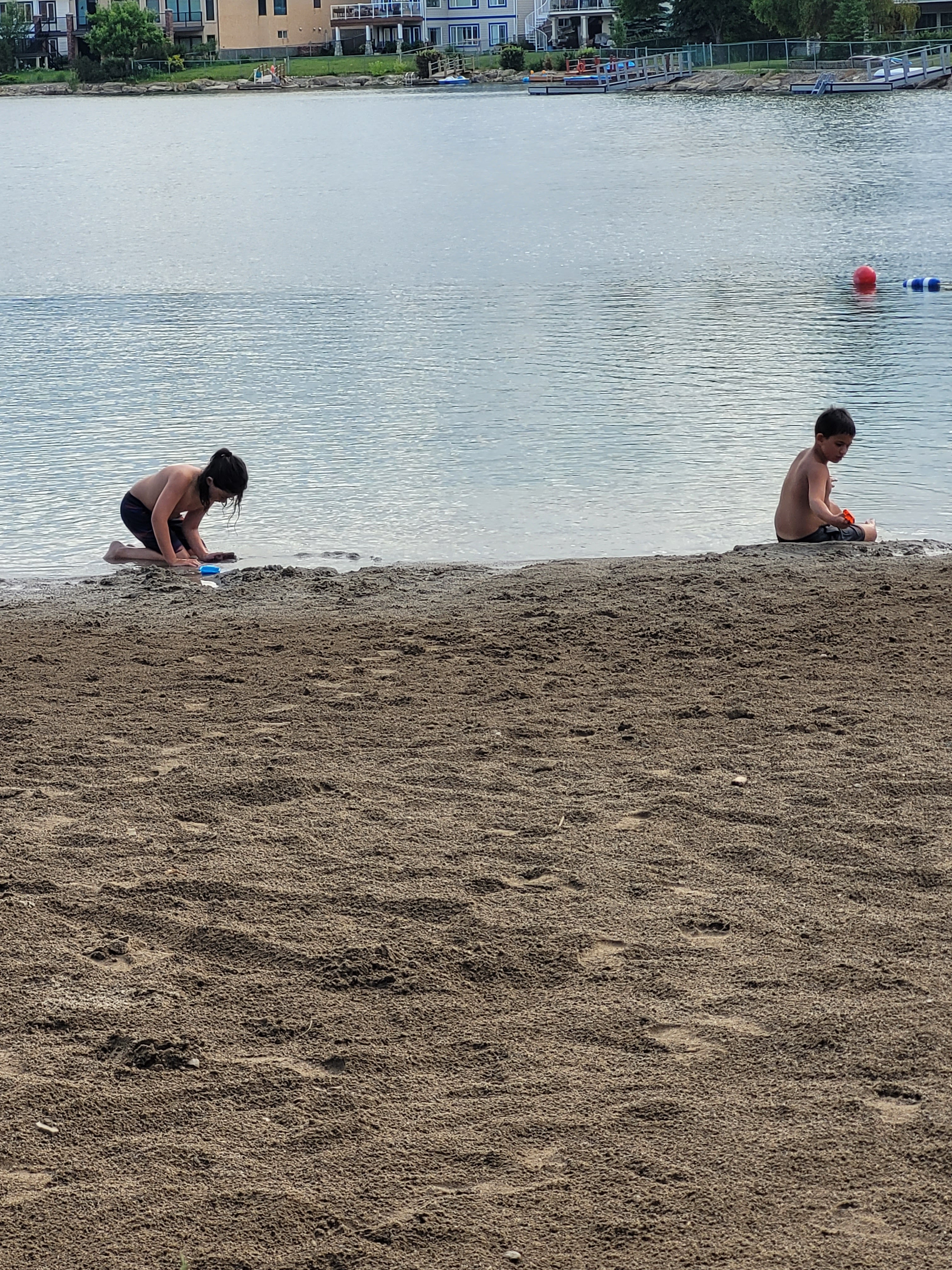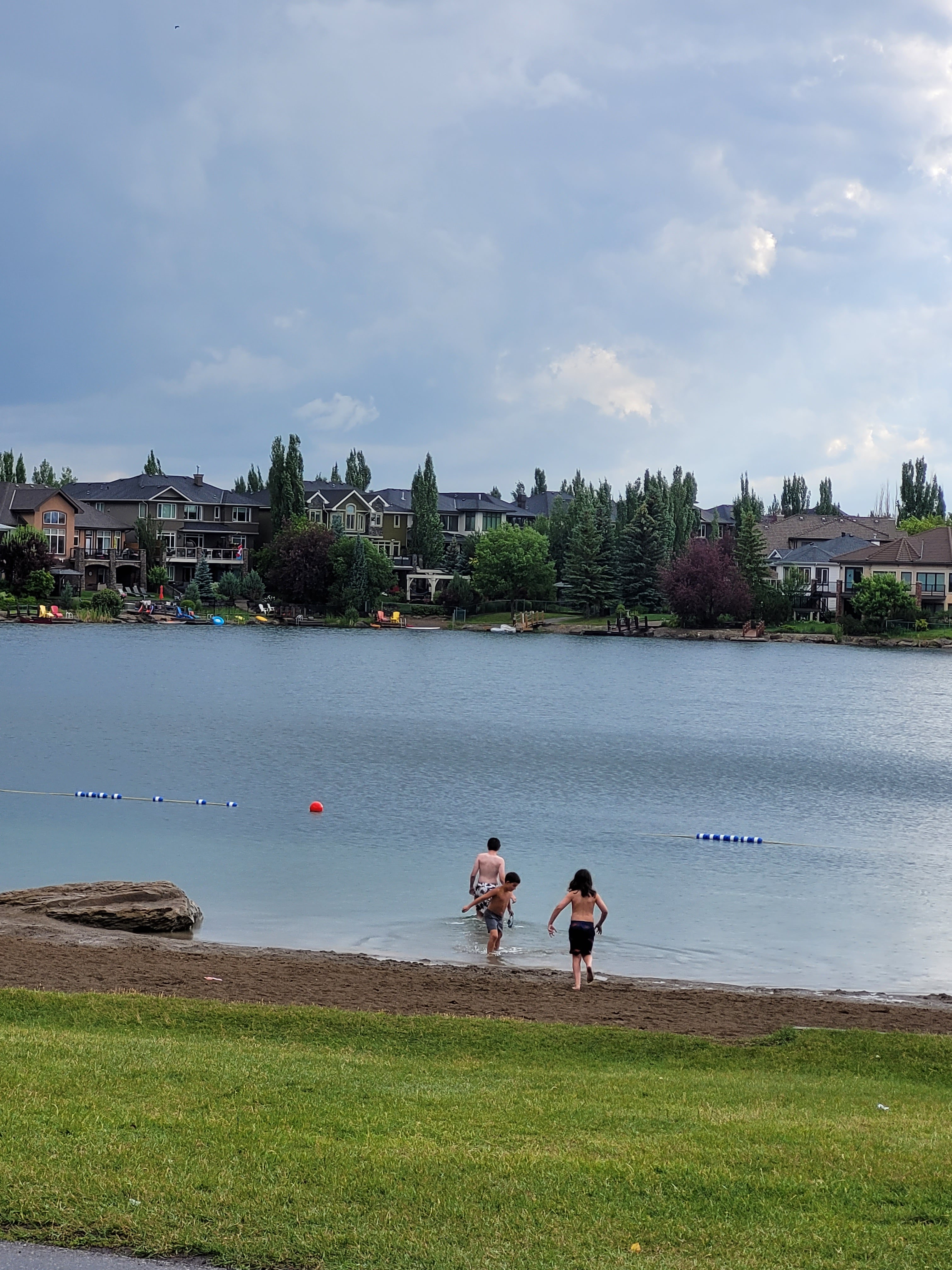 It is unbelievable to me how kids love the water even when it is colder. We had such a wonderful day then a storm blew in. Wind and rain for about an hour and then cleared up. I didn’t bring a jacket but wished I had as it got cool. Audrey came which was great. She has such a wonderful lake so close to her that she doesn’t use. If I were her, I would walk down to the lake, which is maybe a 5-minute walk. I would just sit there during the day. It would be an outing to see things and talk to people at a wonderful location. Lake Chaparral be all accounts is one of the nicer lakes. We have Midnapore an old lake, Sundance Lake, Mckenzie Lake, Lake Bonvista whihc is the oldest and Arbor Lake in the south also. I especially like the roped off section to swim in Chaparral.