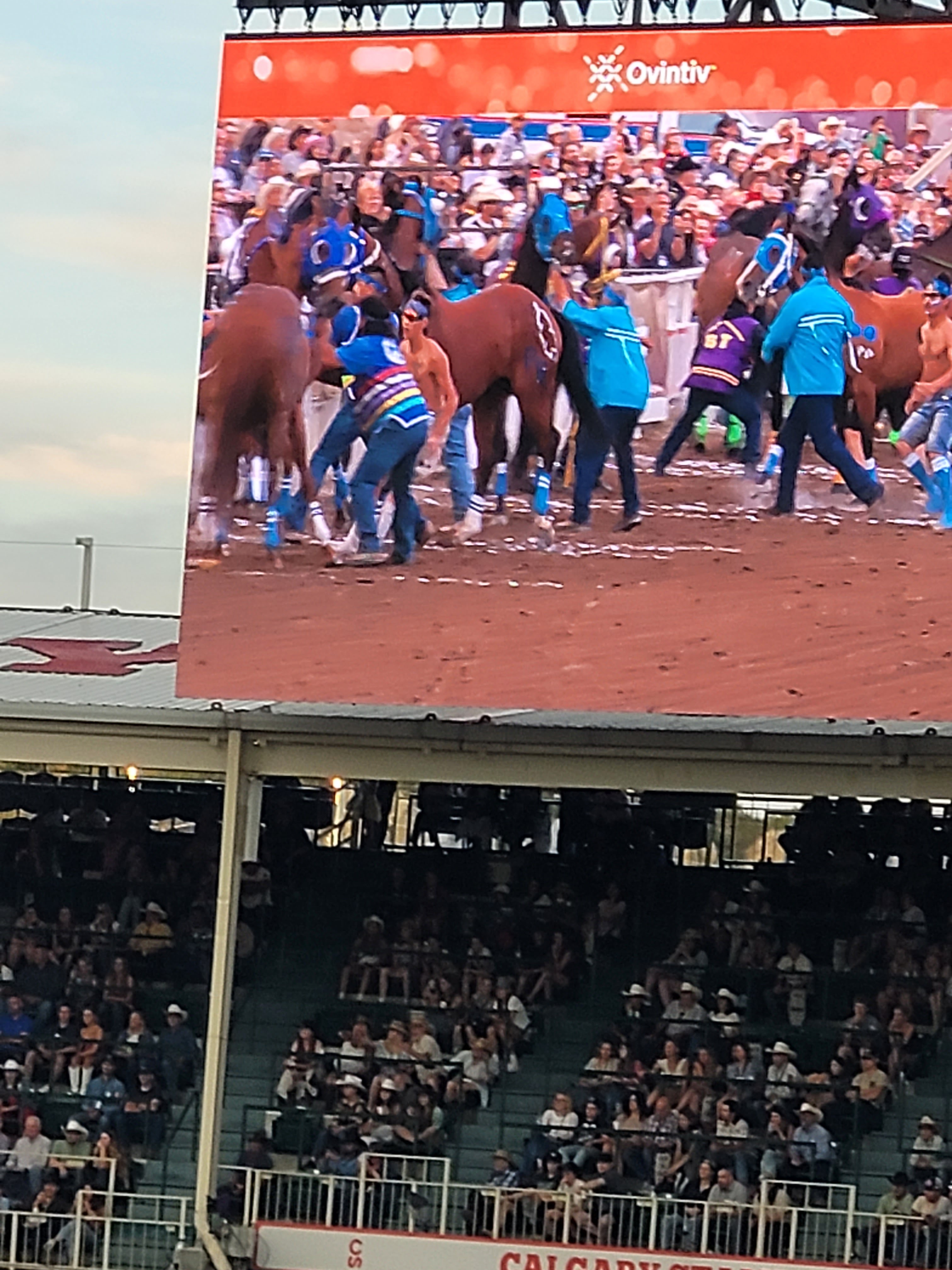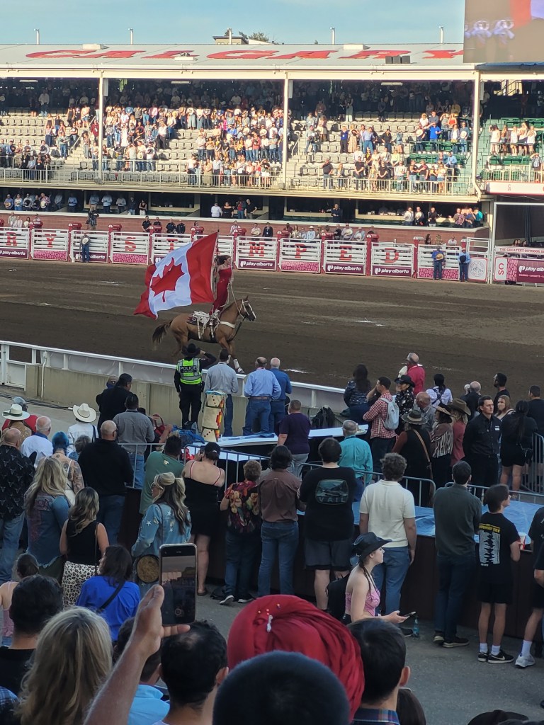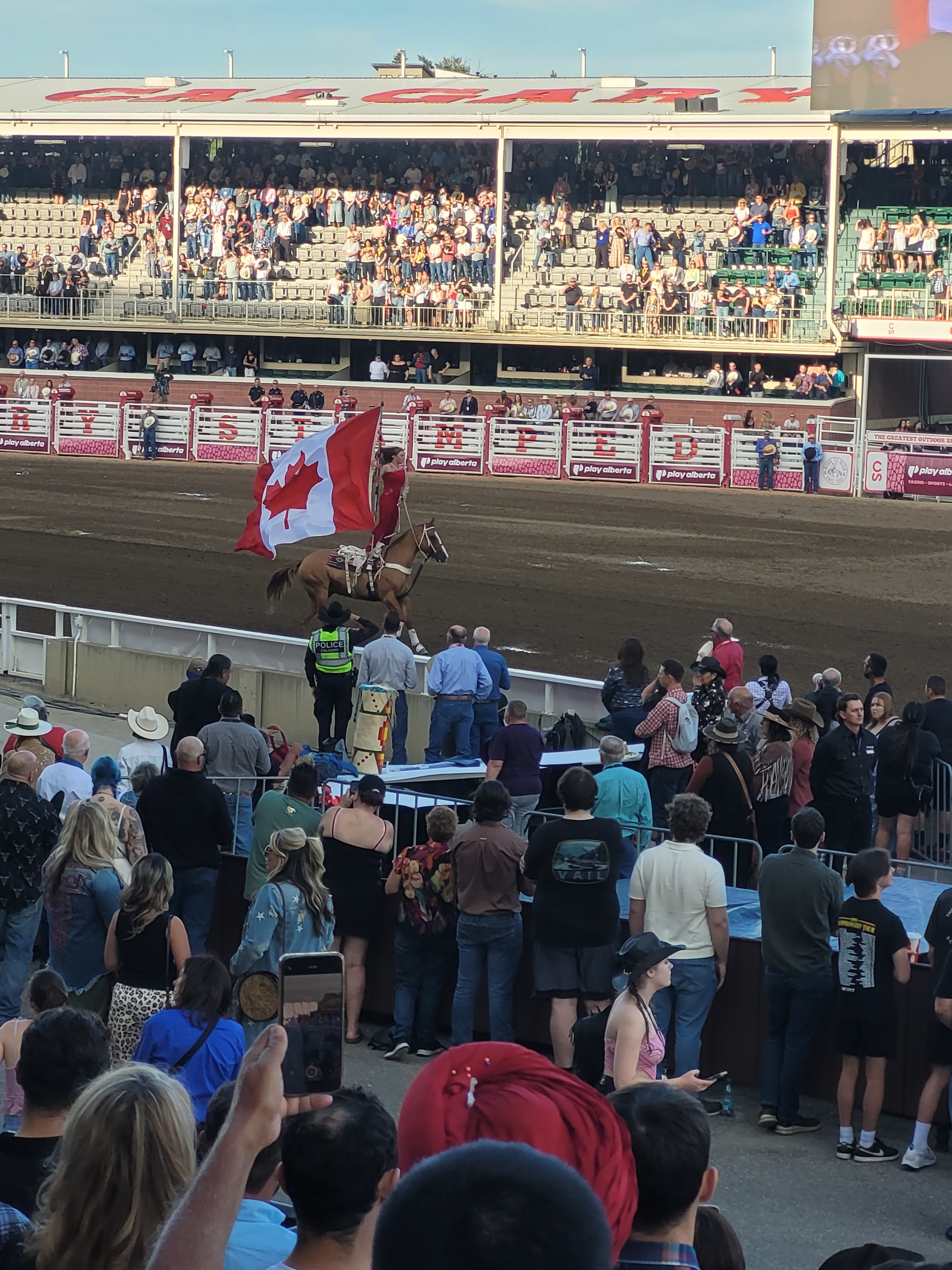 The Grandstand show was amazing again this year. Chuckwagons are always fun to watch and the Native Relay Races are my favorite, The Young Canadians always are entertaining. We had all of these. There was motor bike jumping. A naked man performed pole dancing (I thought I was at a bachelorette party). There were gymnasts, singers, and balance acts. The main act was Carolyn Dawn Johnson. Carolyn is a little older now. Her voice is a little sketchy. However, it was still an okay performance. She is a star from Alberta so nice that happened. Add in an amazing drone show and spectacular fireworks it was a great show. It ended with a very patriotic rendition of Oh Canada. I thought it was a little over the top, but it was still very nice.