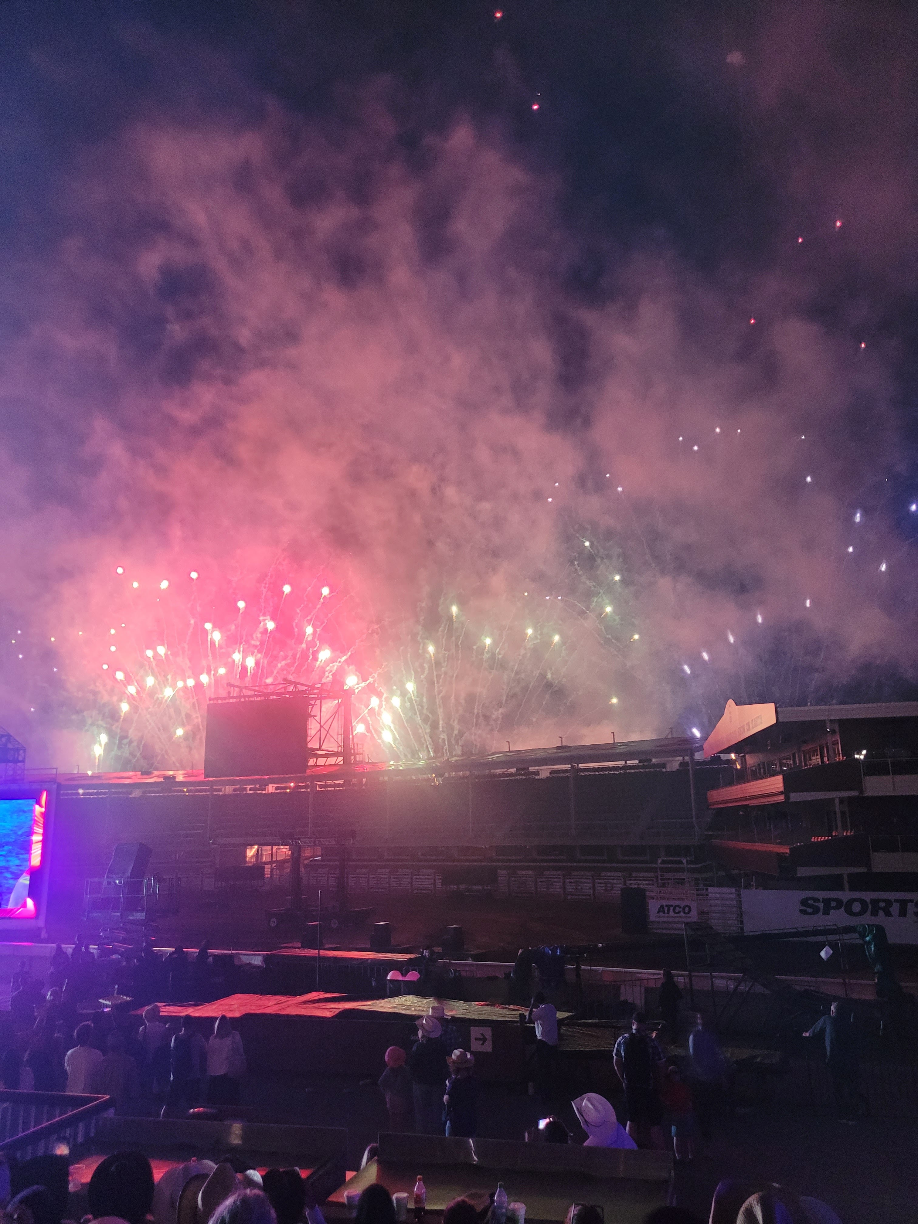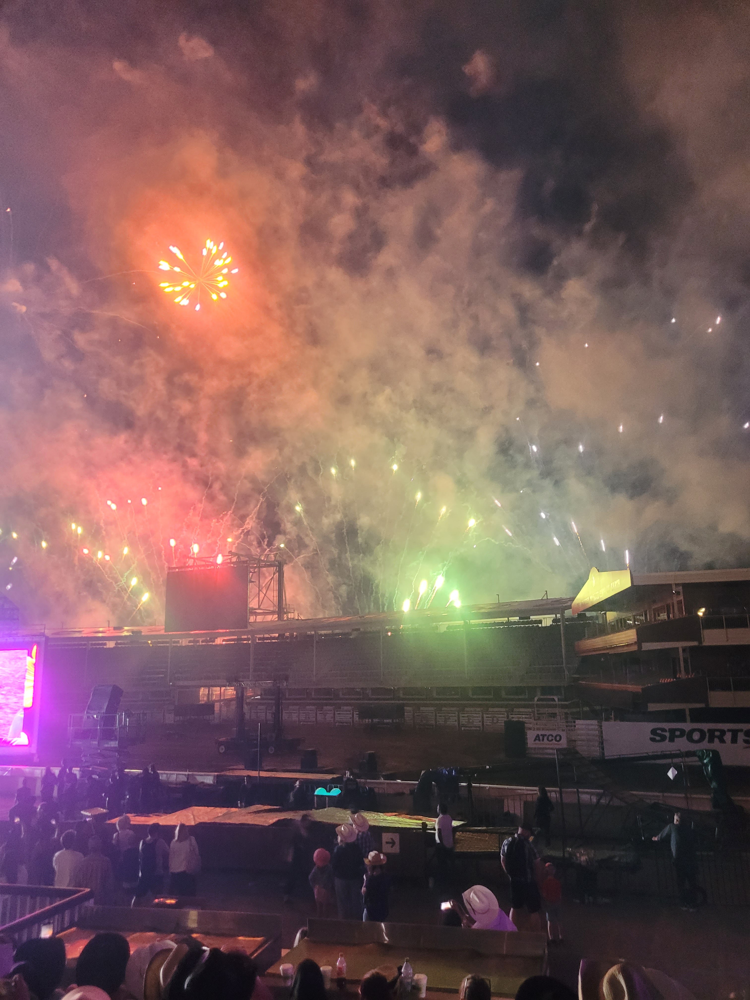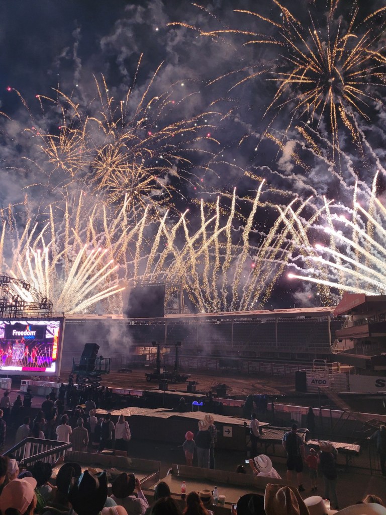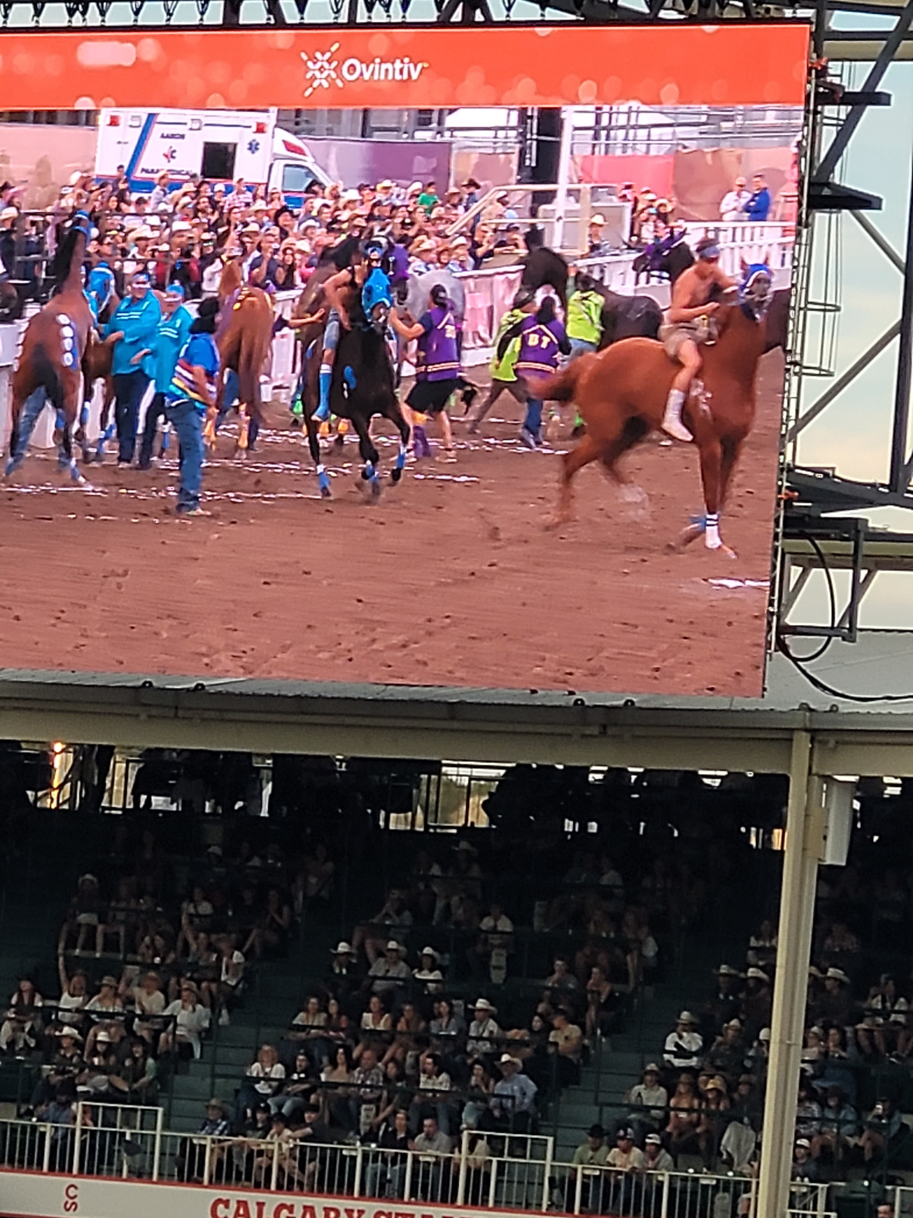The Grandstand show was amazing again this year. Chuckwagons are always fun to watch and the Native Relay Races are my favorite, The Young Canadians always are entertaining. We had all of these. There was motor bike jumping. A naked man performed pole dancing (I thought I was at a bachelorette party). There were gymnasts, singers, and balance acts. The main act was Carolyn Dawn Johnson. Carolyn is a little older now. Her voice is a little sketchy. However, it was still an okay performance. She is a star from Alberta so nice that happened. Add in an amazing drone show and spectacular fireworks it was a great show. It ended with a very patriotic rendition of Oh Canada. I thought it was a little over the top, but it was still very nice.