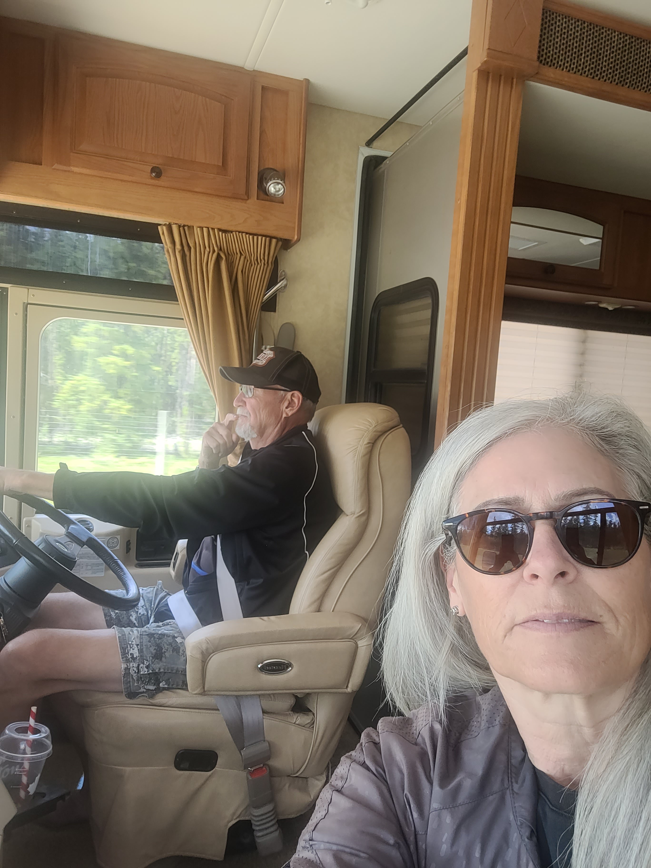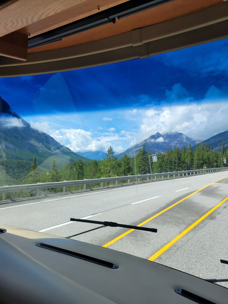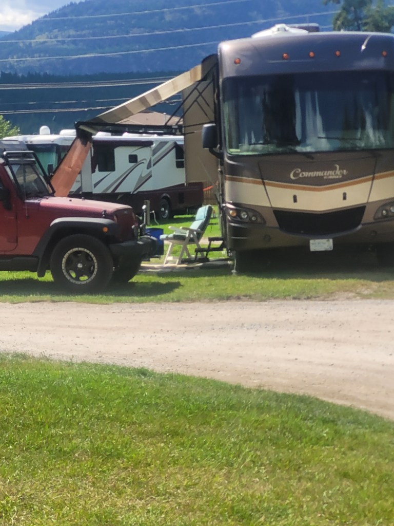 We were whipping along then we come up behind a Fraserway motorhome. Most likely a rental but the worse driver ever. They were scared to drive in the mountains. A cliff is only a few hundred feet down step on the gas. We were down to 30 and 40 kms per hour on some descents and corners. On the straight aways a few cars could pass but Highway 93/95 has very short sections of straight before a corner. Plus every one was coming to Invermere BC this long weekend so the highway was jammed. I do not have enough power to pass on a incline with 20 cars behind us wanting to go so had to wait for a passing lane. Finally. Unbelievable, the guy stays in the left lane. No driver that I know of doesn’t know ( and the sign states) slower vehicles stay right. I gunned it and passed on the right along with 20 cars behind us. That was just one poor driver.