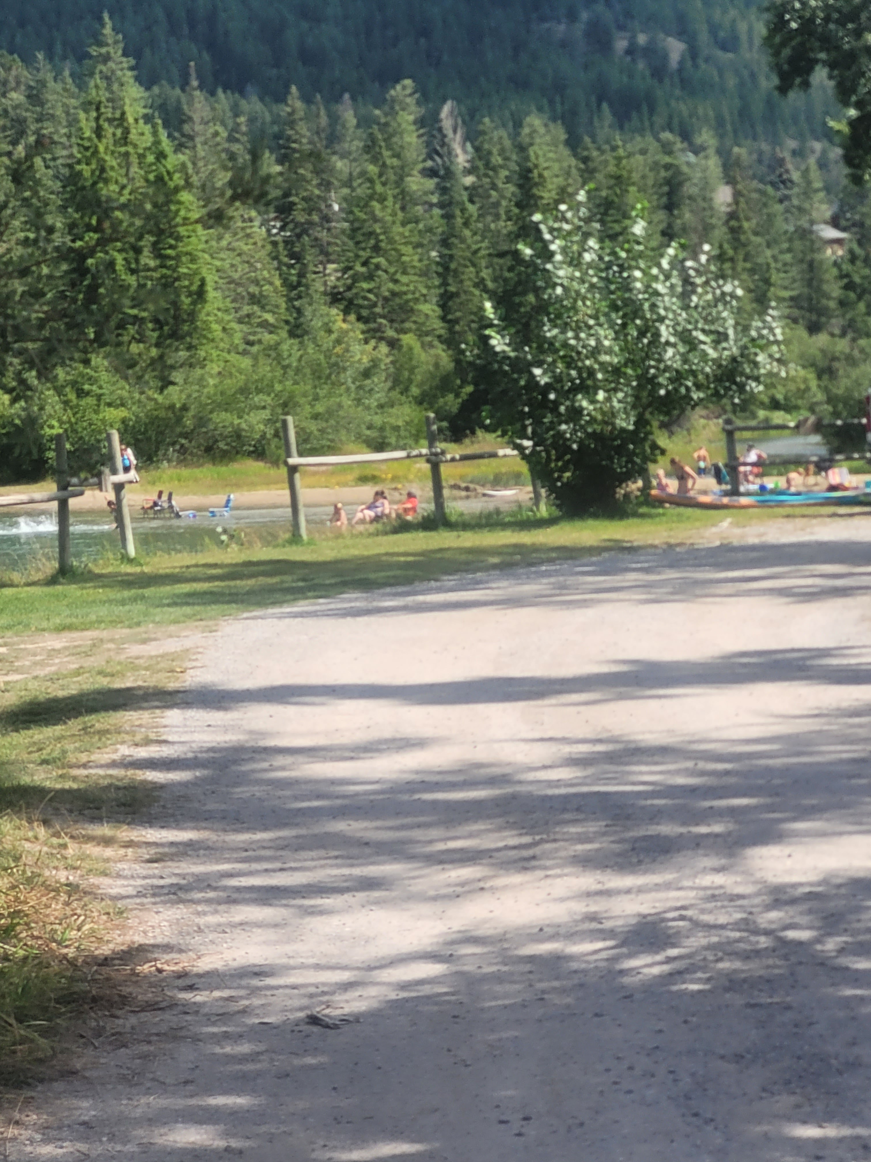 They found a road that goes around the backside of Invermere Lake which was excellent. A pathed bike path the entire distance supposedly 52 kms right along the road. The route we took brought us right into downtown.