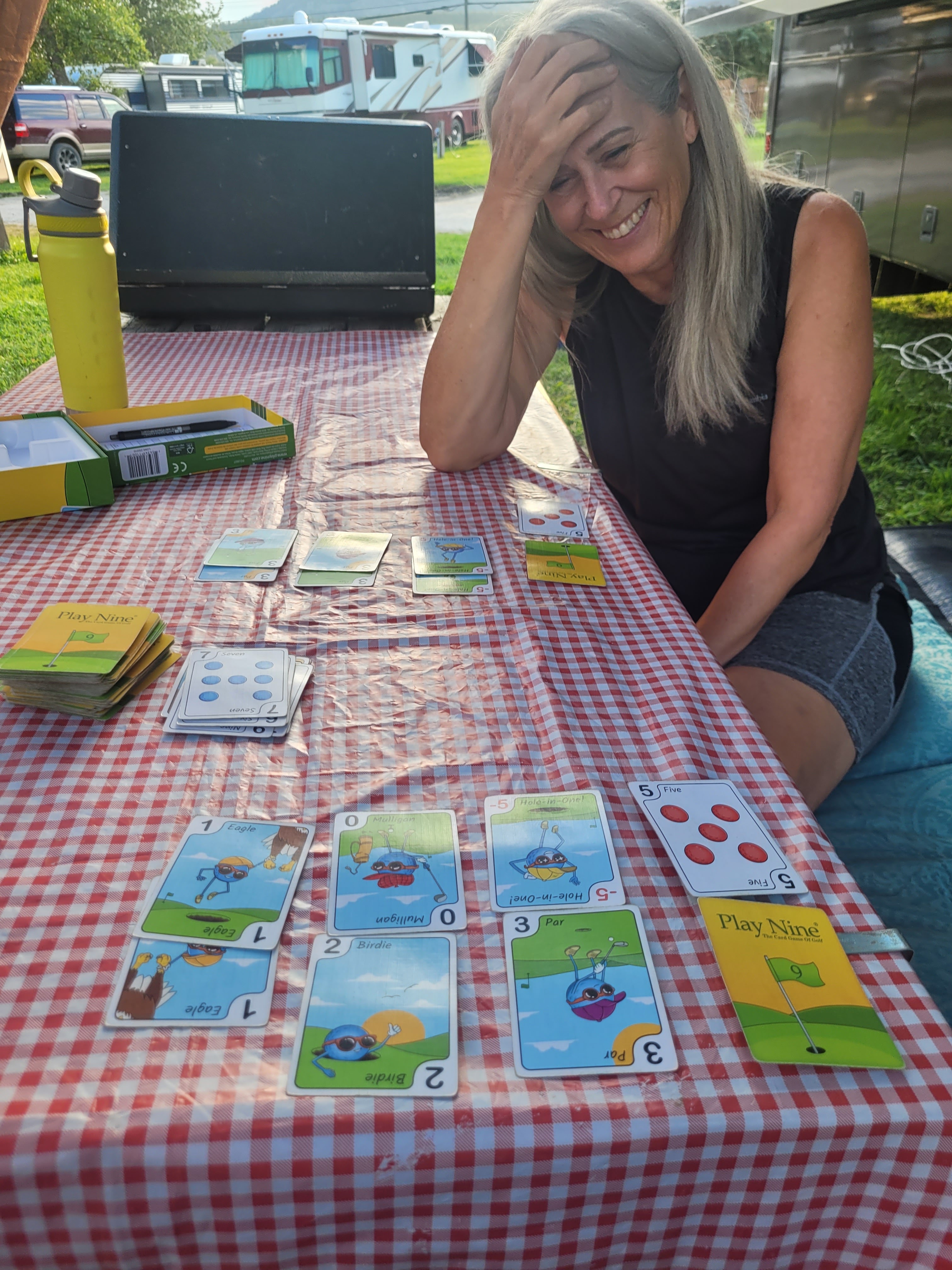 We then played games for quite a while. Always an enjoyable time. I came close to being skunked at one crib game but just made it over. Jackie’s luck with -5 cards continued with Play NIne.