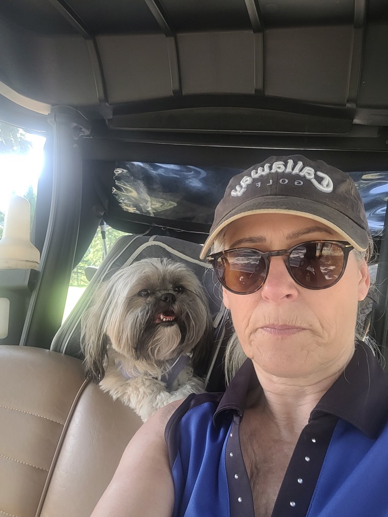 On one hole near the end he was coming down the path as Jackie was in the cart. I expected her to cover Daisy up but Jackie didn’t see the guy. No real negative comments about the situation which is good but as he was leaving and did not pet her, Daisy barked a bit. I don’t like that.