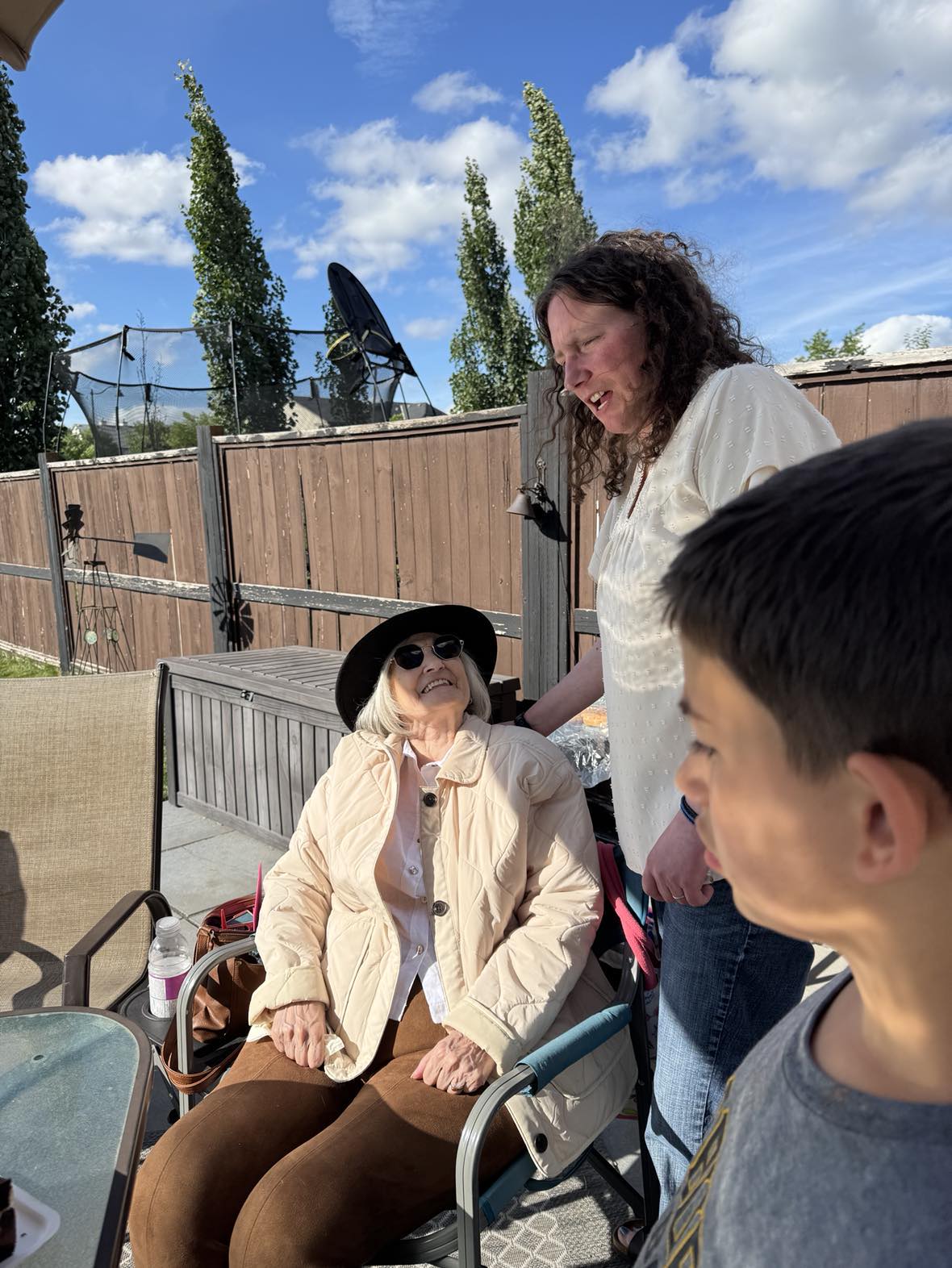 Jackie wins the best dressed today wearing her new Mothers day clothes I bought her. I thought she looks wonderful.