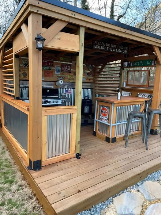I went from Cedar to Pressure Treated due to cost then went with 4 x 4 instead of 6 x 6 or 6 x 4 but the look will be just as good and it will still be very sturdy. I hurts me to not to over build but it will be a lot less costly and still be perfect. 4 x 4 posts, 2 x 6 floor joist, 5/4 x 6 deck boards, 2 x 4 rafters (12 in on center) strapped roof, black metal roofing and galvanized metal 3 sides.