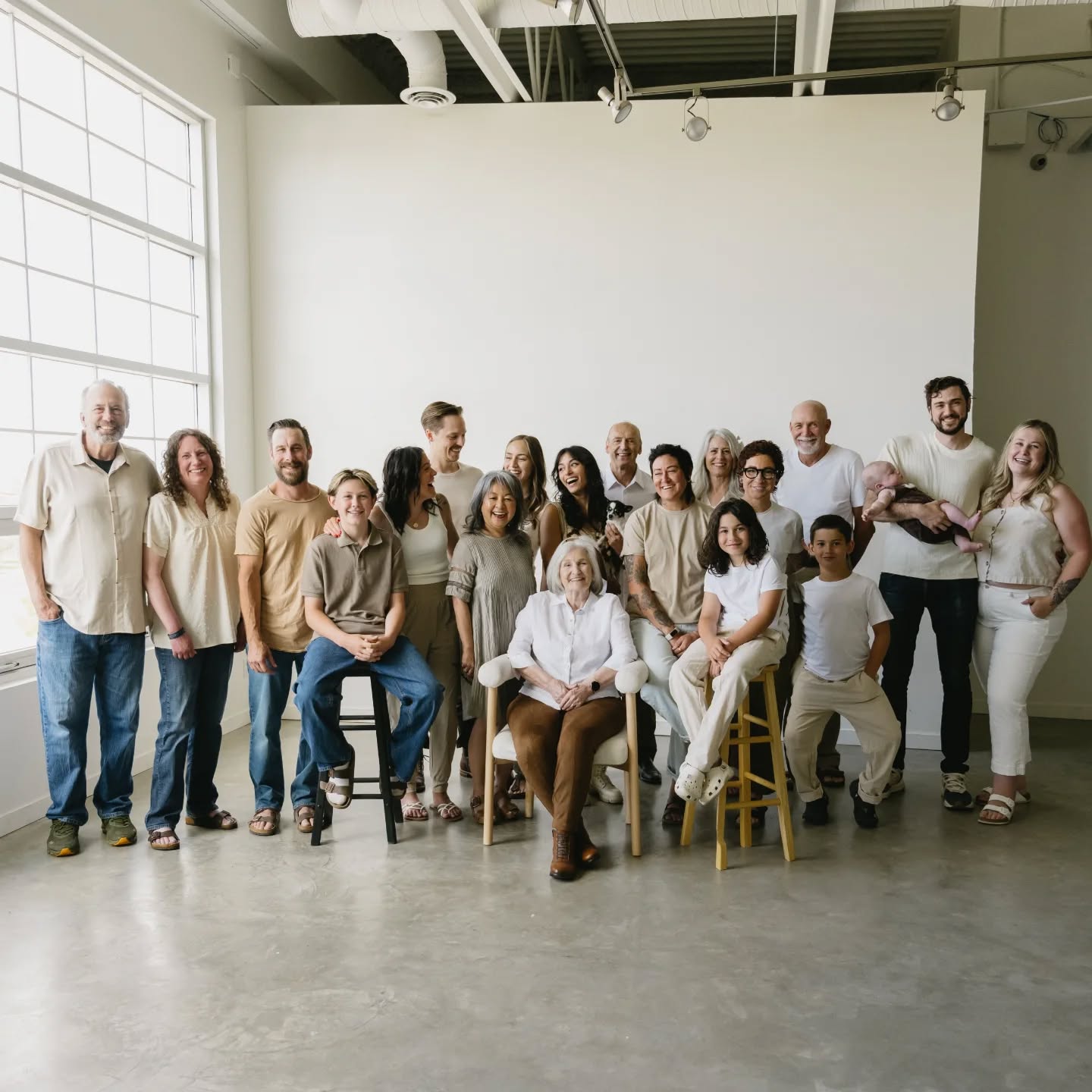 Our niece who is a professional photographer and excellent at her job organized a Huggett family shoot for Audrey’s birthday. She picked a wonderful studio just off 114 Ave so very close for everyone. Arriving there though we find out that it is the 2nd level with 2 flights of stairs. Now Audrey is in great shape physically for her age at 87 years old compared to a lot of people but can shy away from attempting things. Kristen felt bad. BUT it all worked out perfect and I was very impressed with Audrey’s will to try and conquer the stairs. I knew she can do it, but never expected her to do so well without numerous rest breaks etc. She did remarkable.