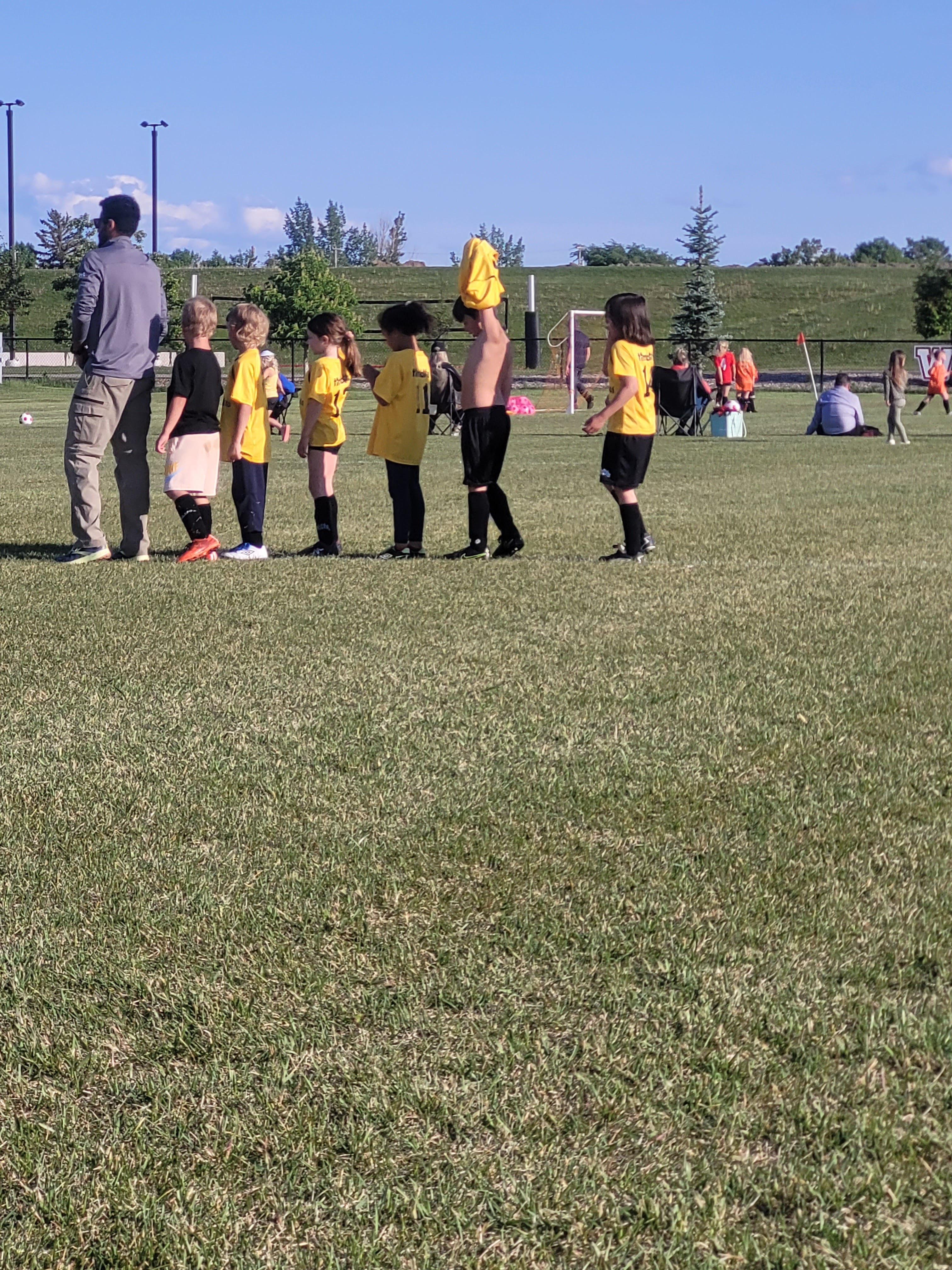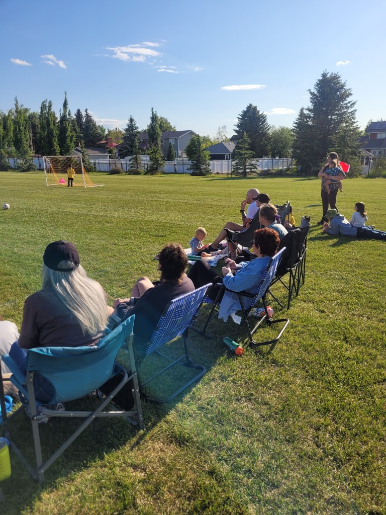 Get this. The Grade One school teacher ( all of these kids were in Grade One) game out to watch the game when she didn’t have a kid herself playing but to support her students. That is a teacher.