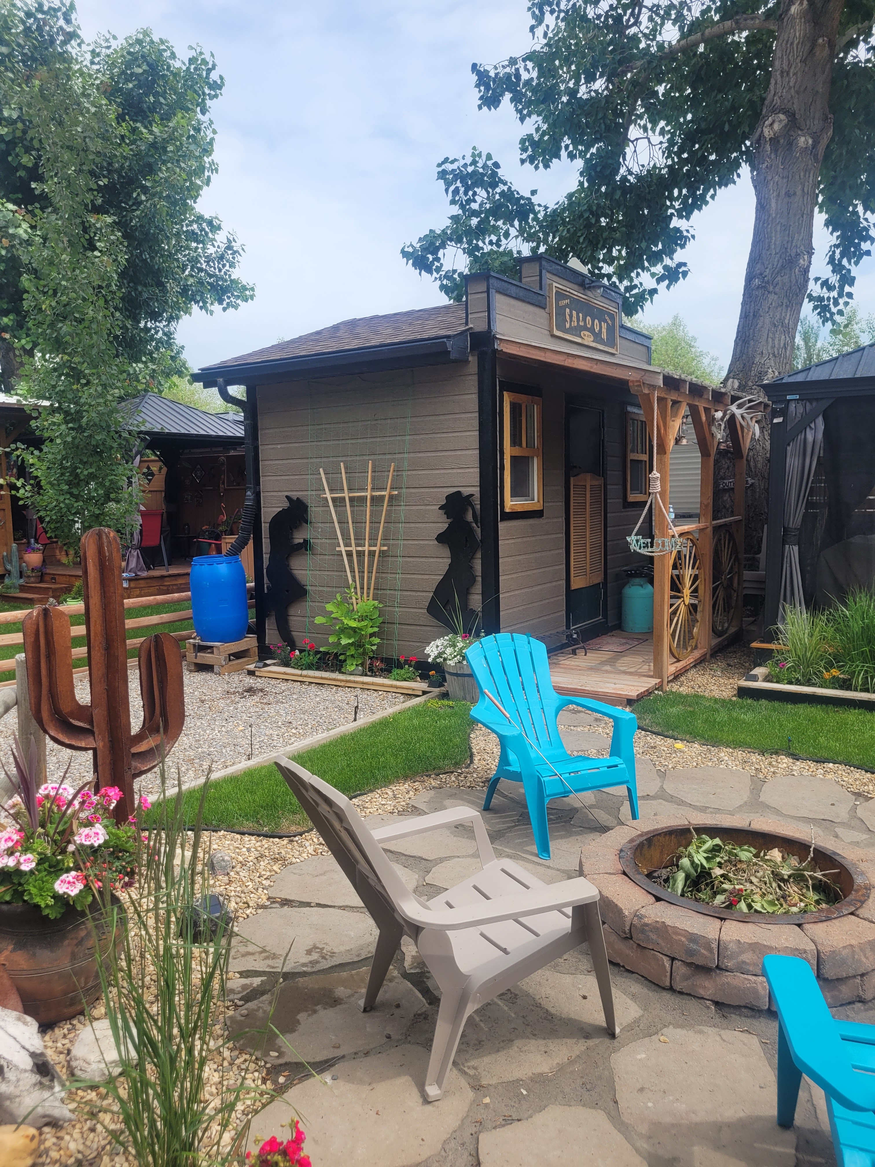 Besides all of the sun, and buzz around us, we also accomplished a lot. Jackie gave the saloon a thorough cleaning, I installed one more sprinkler head and adjusted the timer again on my system. I cleaned up and weed whacked the neighbors lawn edges. I also borrowed the neighbors lawnmower and cut the grass across the street.