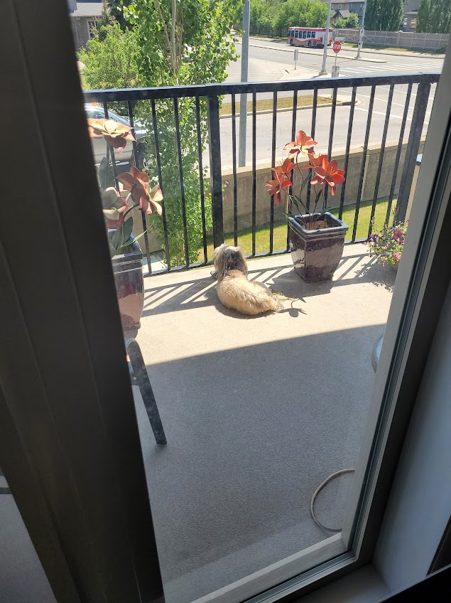 I also trimmed and cut my lawn and dead headed my flowers. Daisy had fun watching all of the traffic.