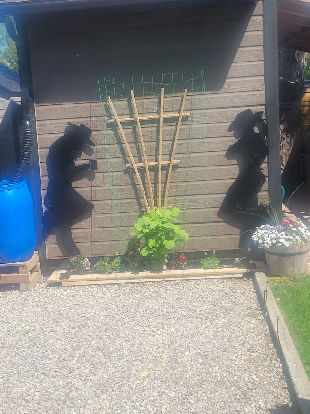 I trimmed the lot, flower beds, and side garden. I cut the grass in out front yard and beside the trees. I used my new hedge trimmer on my Sand Cherry bush which turned out great. Lot of weed pulling. Reset my timer as I now have a Zone 2 and Zone 1 working on different days. I installed another head to one plant that was left out. All oof the plants are doing well except for my purple leaf variegated in the front box. Clematis is off and looking great.