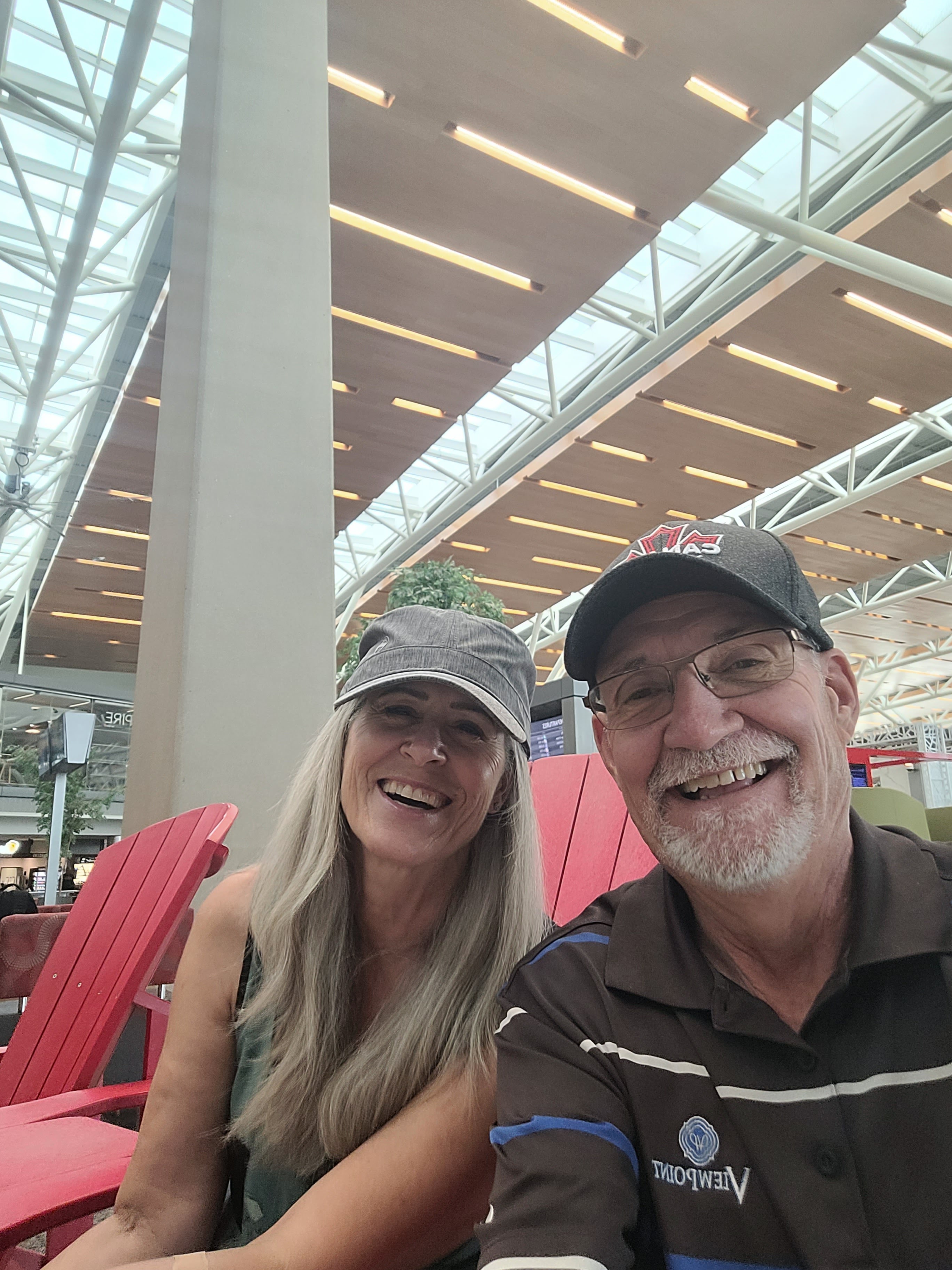 It was real long hike and I bet it took us at least 1/2 hr of fast walking to get there. We made it without a hiccup but talk about a convoluted path and confusing with vey little signage. Just as we were at our gate Alan & MaryAnn met us. Well Alan tried scaring us. These two with the standby flying are cool cucumbers with the different objections thrown at them. Yet here they were with smiles on their faces after a interesting time in Vancouver.
