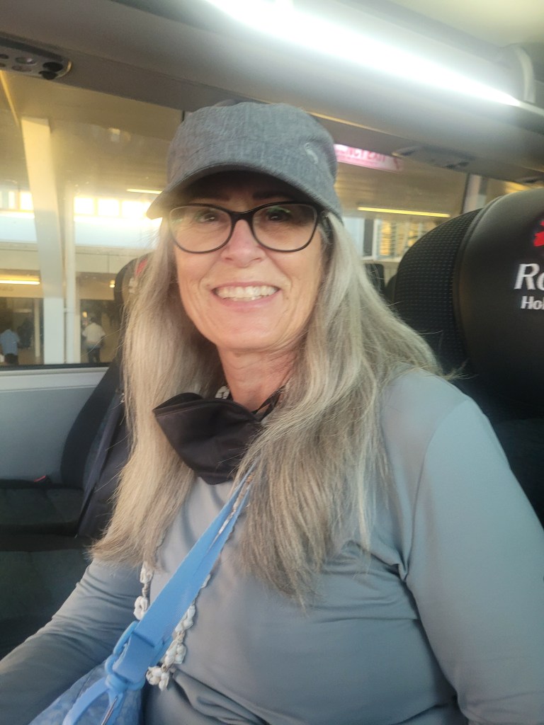 On the bus to board the ship and a lady is panicking as she lost her phone. She was hysterical and crying, She even ran back to her room. Her bags were removed from the lower baggage compartments and checked. She kept crying and was very upset. Jackie got up and moved to sit beside her to help. She consoles her which calms her down and then Jackie attempts to help her locate her phone. She got a phone number from the women but it turned out to be the daughter not her number most likely due to her stress. Jackie said the women wanted to be incognito which is odd but she finally gets her real number. She then phones her and her phone is on silent but she sees a light and it turns out it was stuck beside her seat and bus sidewall. Staff even crawled on their hand and knees looking for it on the bus. Only a 1/2 hour late.