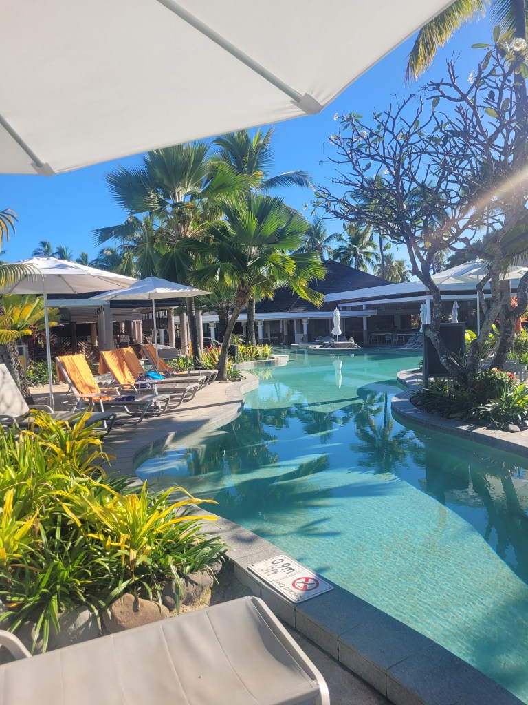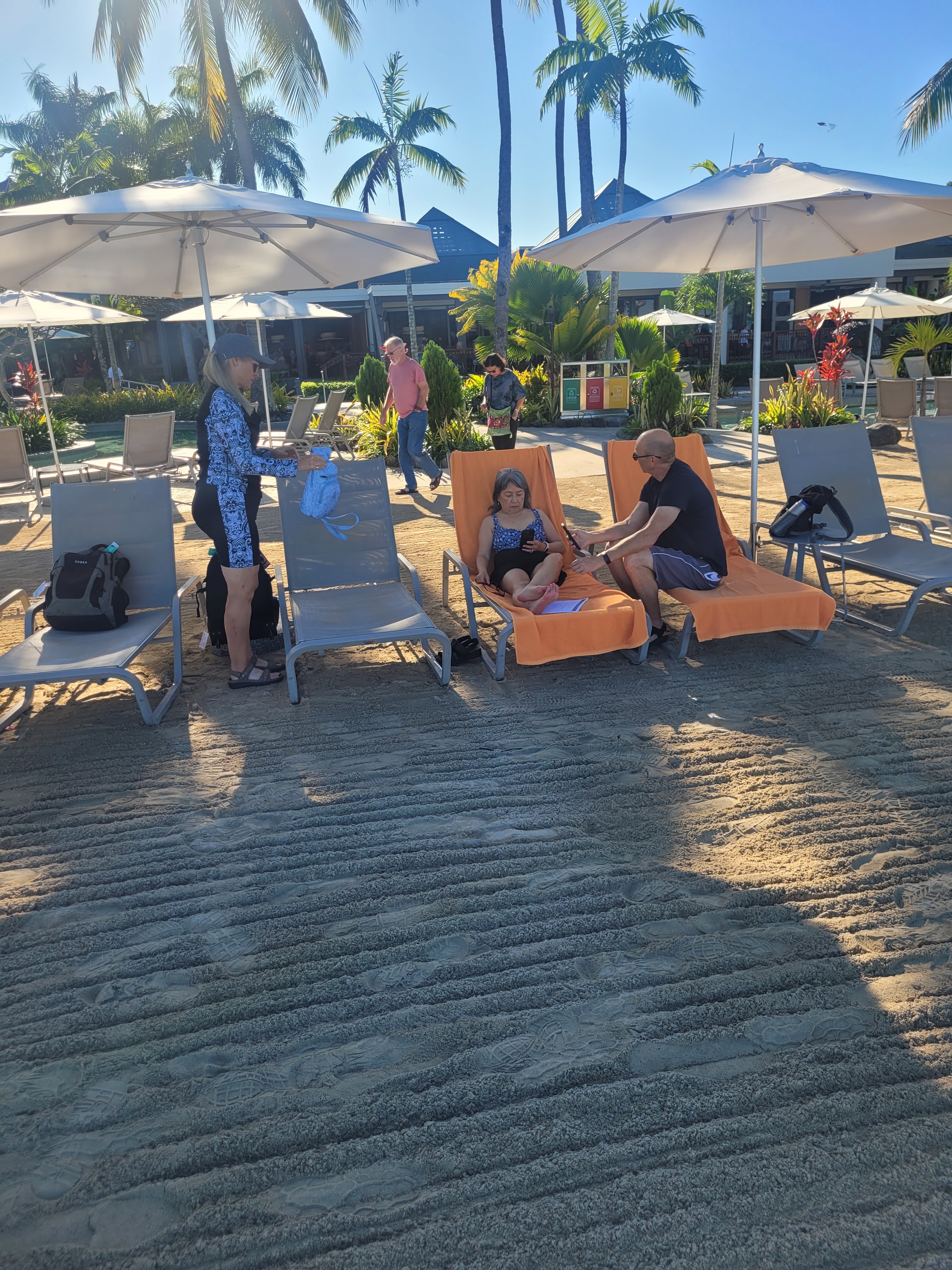 Great service on arrival but I was disappointed in the hotel. For a hotel costing $1000 a night I expected more. The pools were wading pools and kid friendly. No swim up bar and not near the extravagance I expected. Needless to say no sun lotion as they were too large for carry on and we didn’t want to bug the luggage guy. I had the perfect plan but it failed. Somehow the sun got my shoulders and side back without me knowing it and yes I sunburned. A rarity for me and well planned just not executed well. It was the directional changes ie south being north screwed us up. Things were backwards.