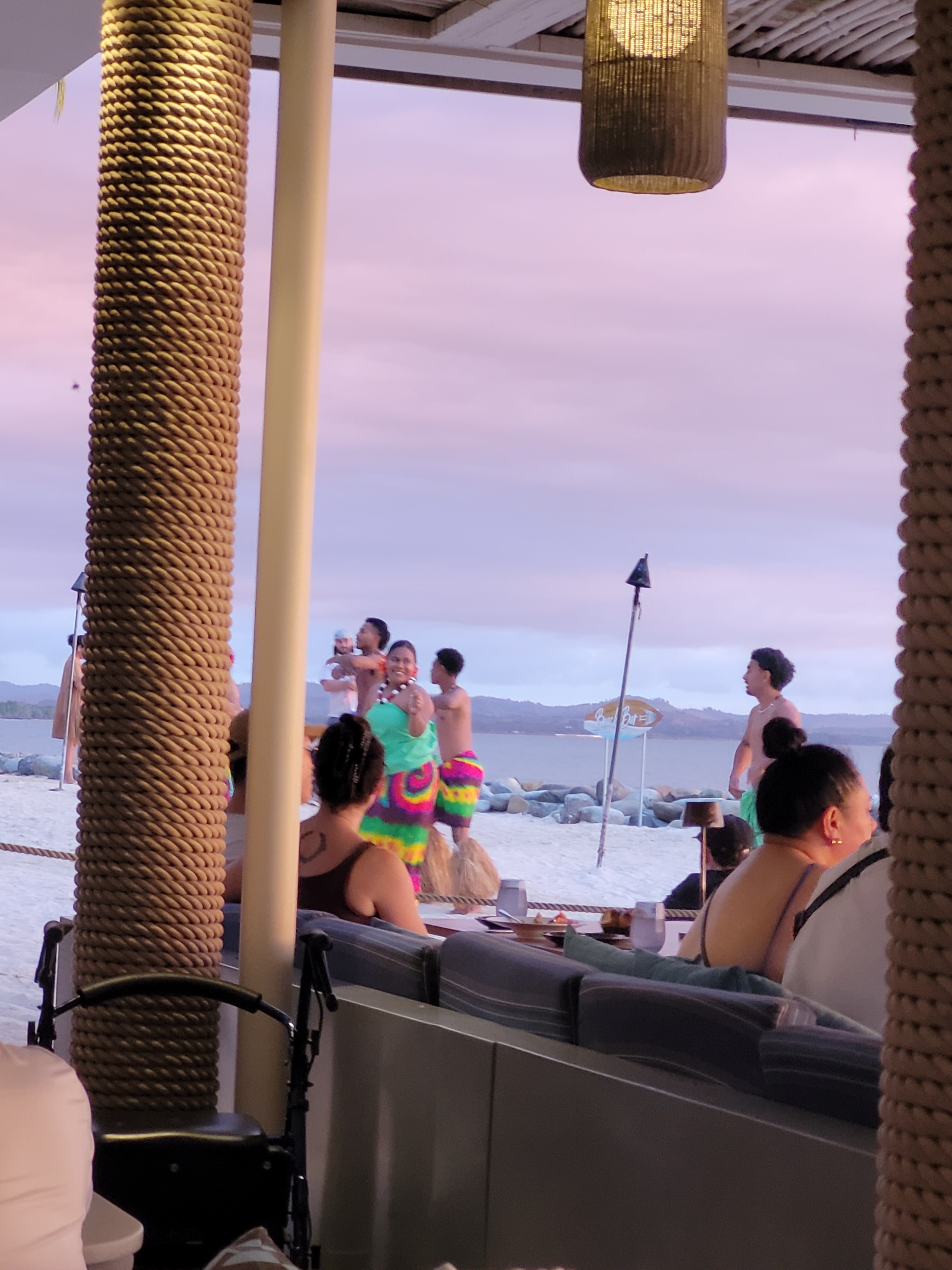We got Jackie up to celebrate and dance. She likes this. All three of them ONCE again had the chance to experience the local culture with a kava ceremony but they choice not to.