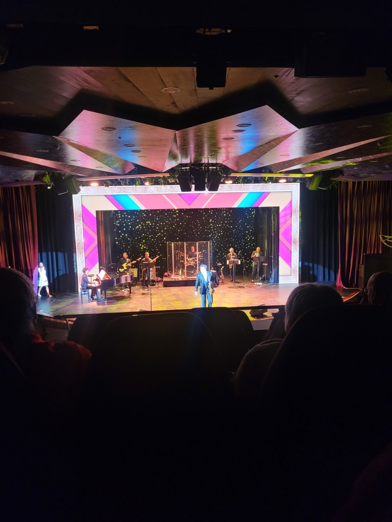 The show tonight was fun. A wacky lady who was a great singer but throwing in a lot of comedy including slapstick. She was rolling on the stage floor, pretending to fall etc. It was a entertaining but wacky show.