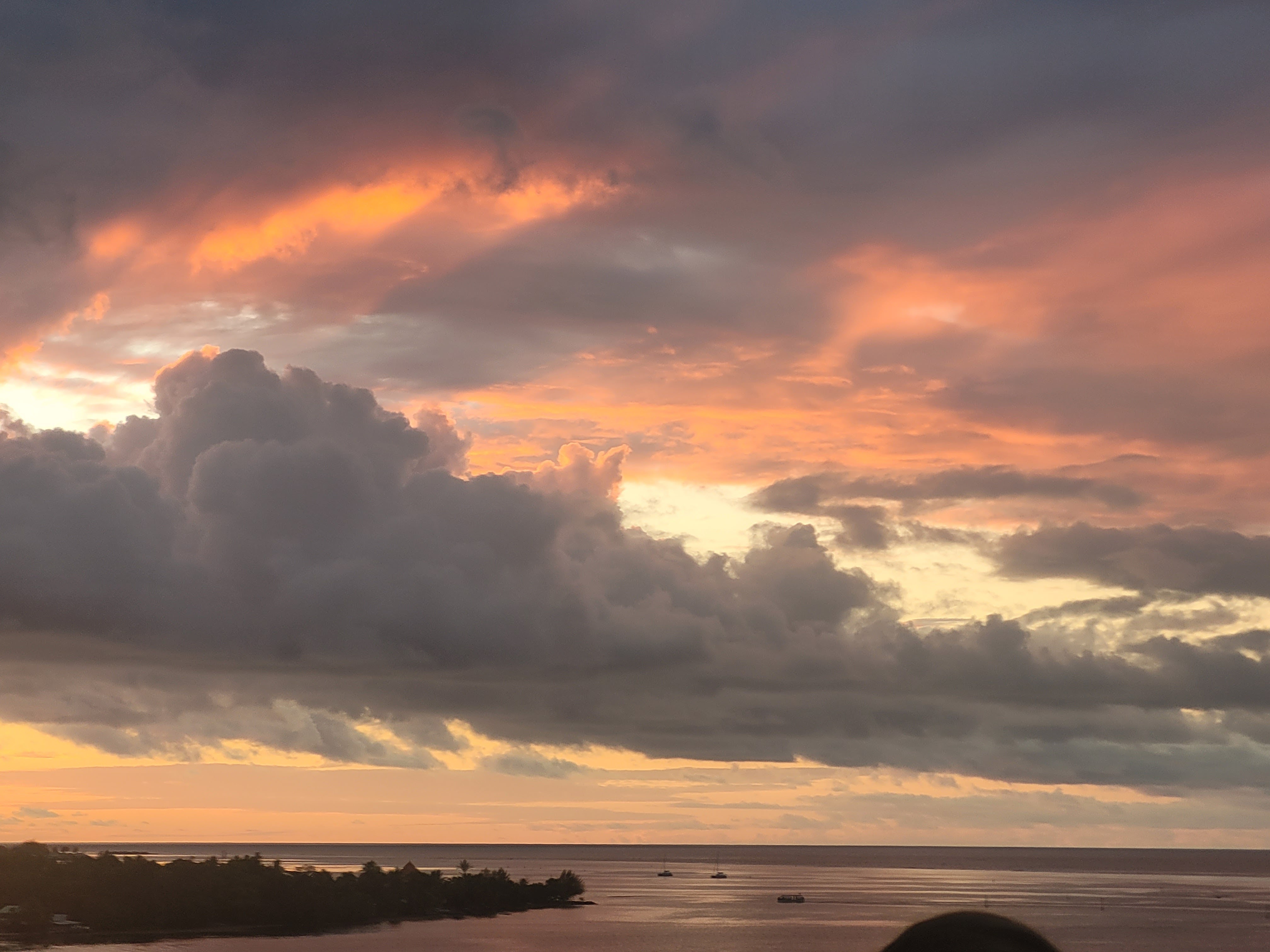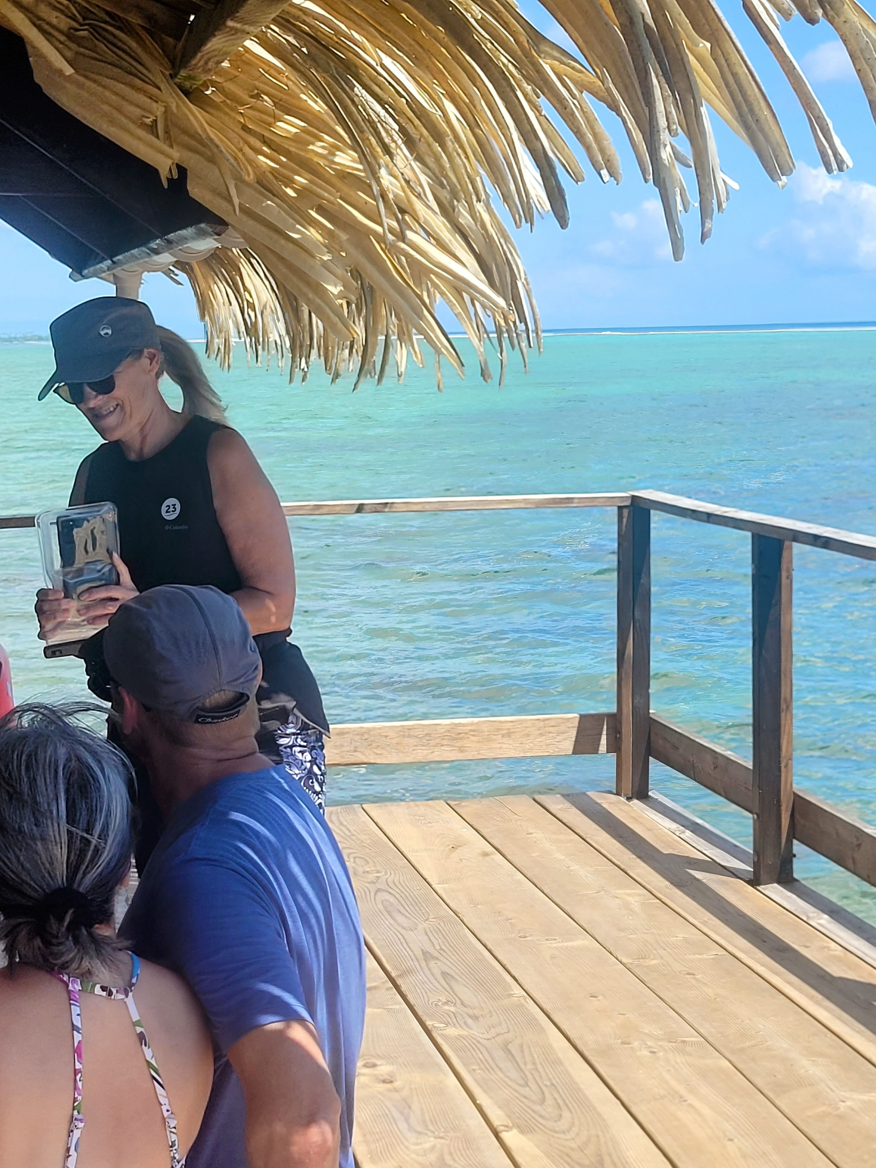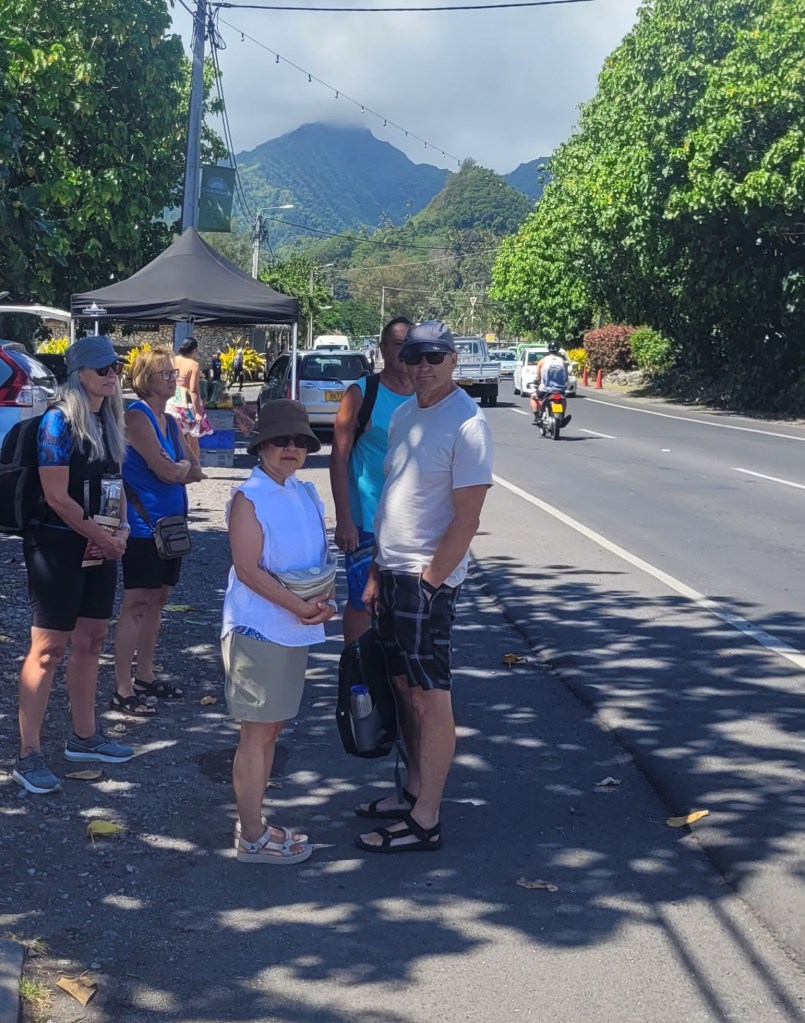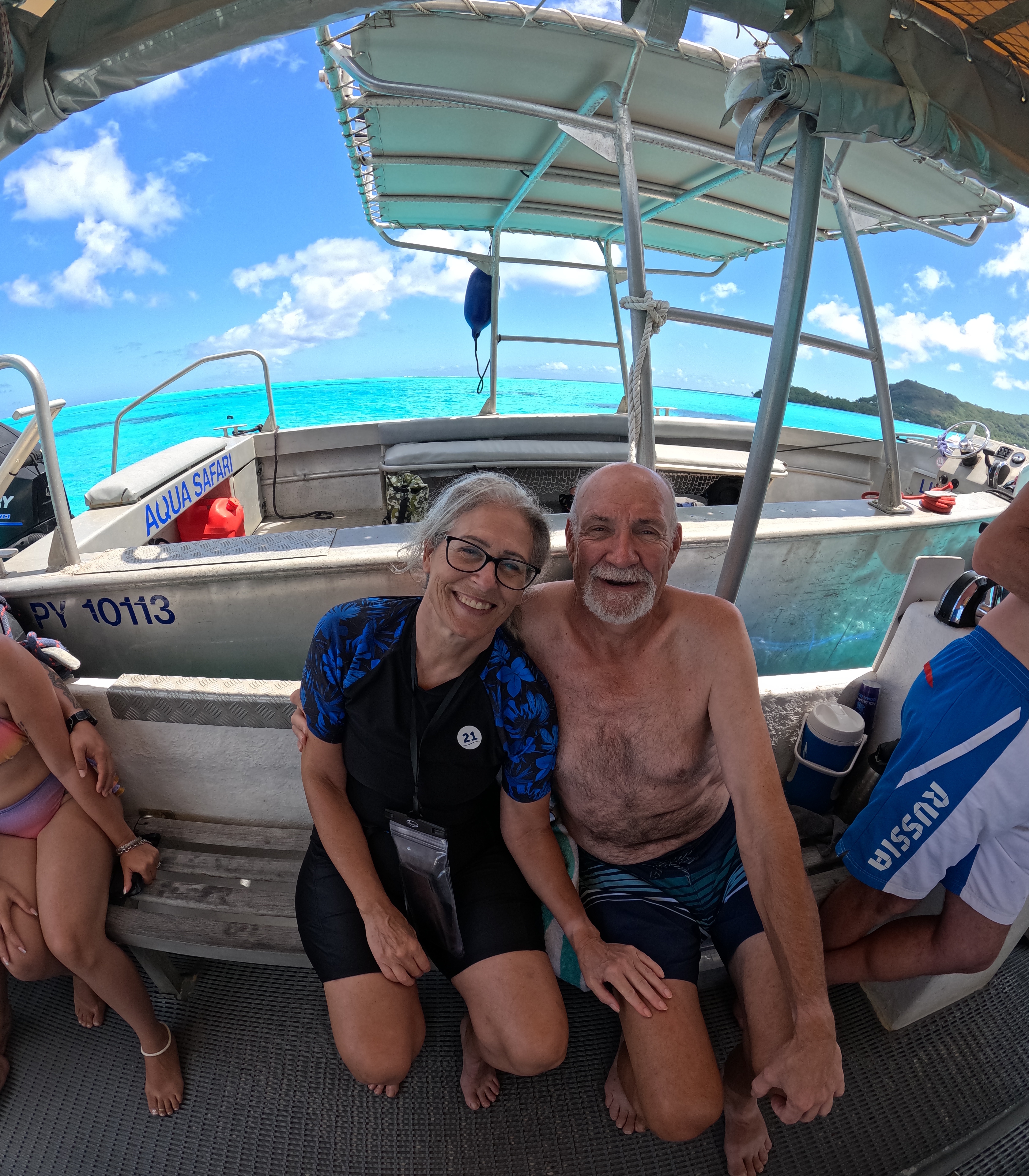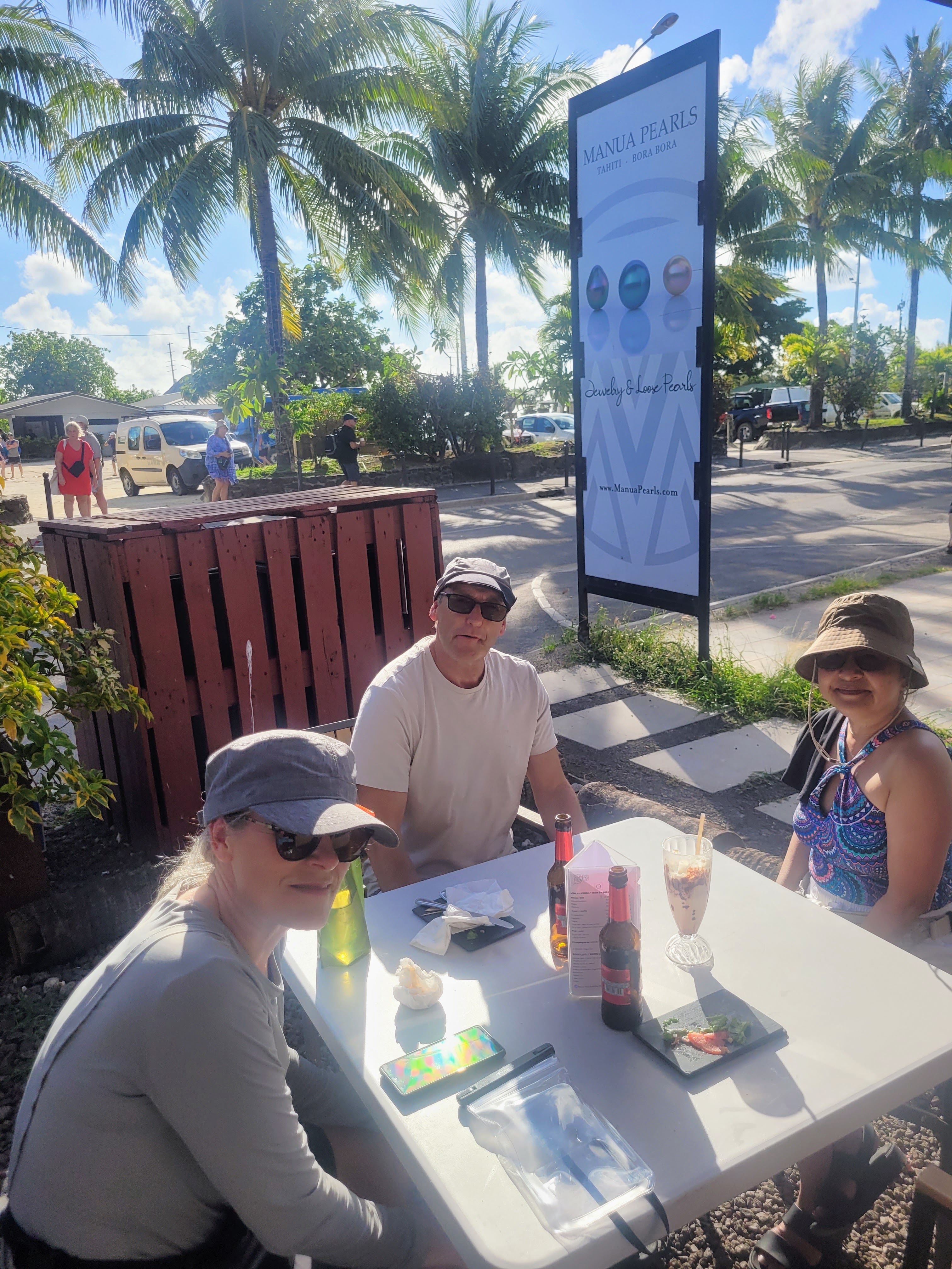 Jackie bought a wonderful cover up from a local vendor with the Polynesian theme. They were laughing as large butts is what Samoa men want and like. The ladies were having a lot of fun with it. We walked to a snorkel beach. Sand and more sand. Fish and coral a ways out but without a mask not the perfect situation. The four of us are getting major steps in to combat the food and drinks.