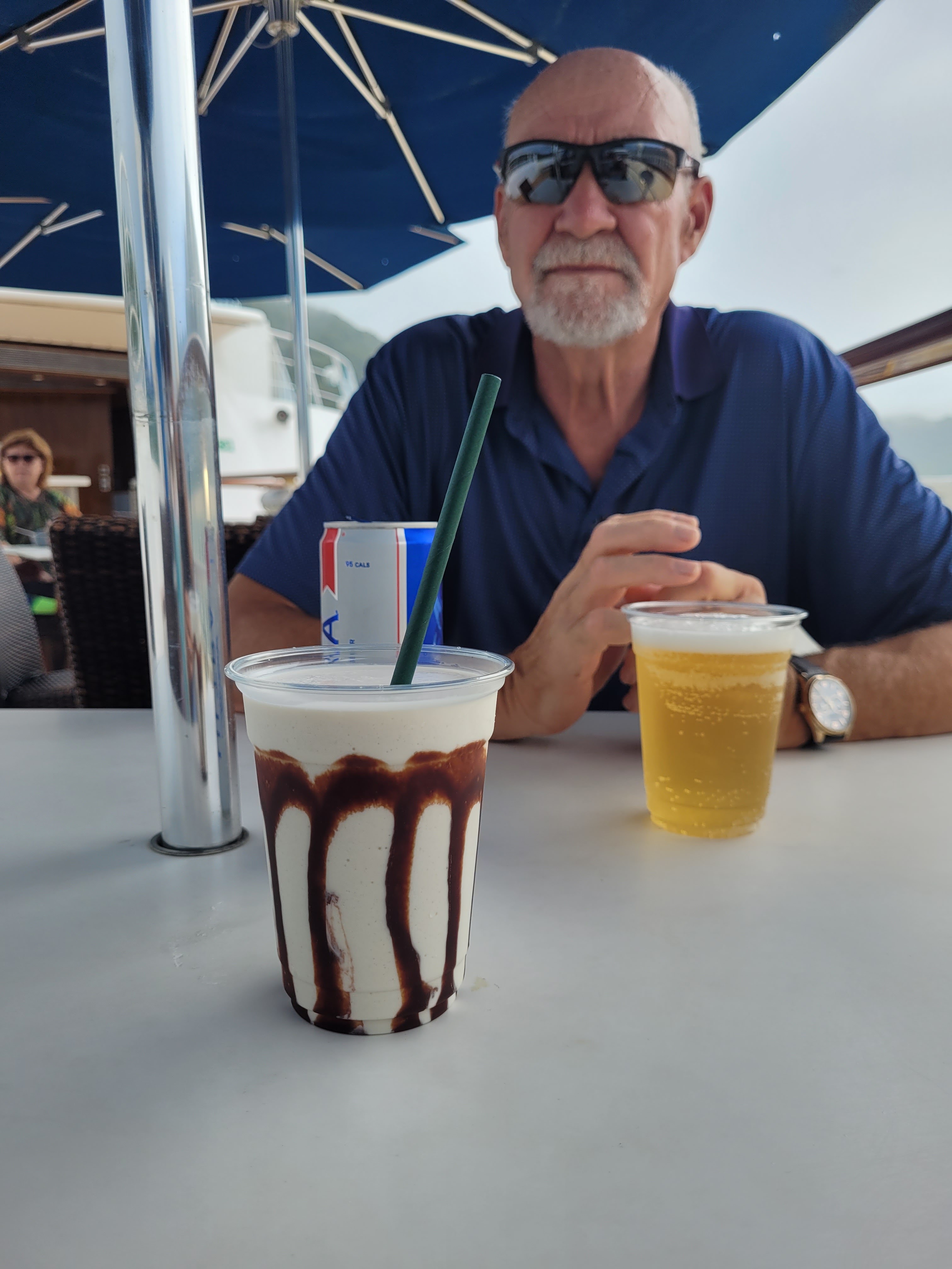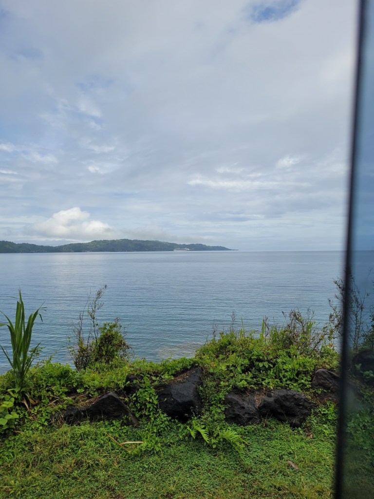 Two stops without an excursion booked I don’t care for. I didn’t want to force my way on others. Forget the cost even if 200 bucks for a tour ride for 1/2 hr it is still better than a walking tour yourself. It was a long haul booking excursions early which I like to do and I sort of gave up and didn’t push and I feel we paid a price for our lack of urgency and commitment. Luckily we have booked the next stops with some awesome events. We still have two special dining coming up also. I am looking forward to the Italian and we will see about the Brazilian. Pouring rain as I write my notes for this on my deck. Rain but 80 degrees. That is humid. A fishing troll boat must have came to shore as I was outside as all of a sudden I smell fish. Were are those barf bags. Fun to watch older people walk on the deck fearful of falling with the wet surface. The boat uses a anti slip paint. MaryAnn and Alan along with us motored over the wet surface with no fear. Alans shoes even squeaked at every step.