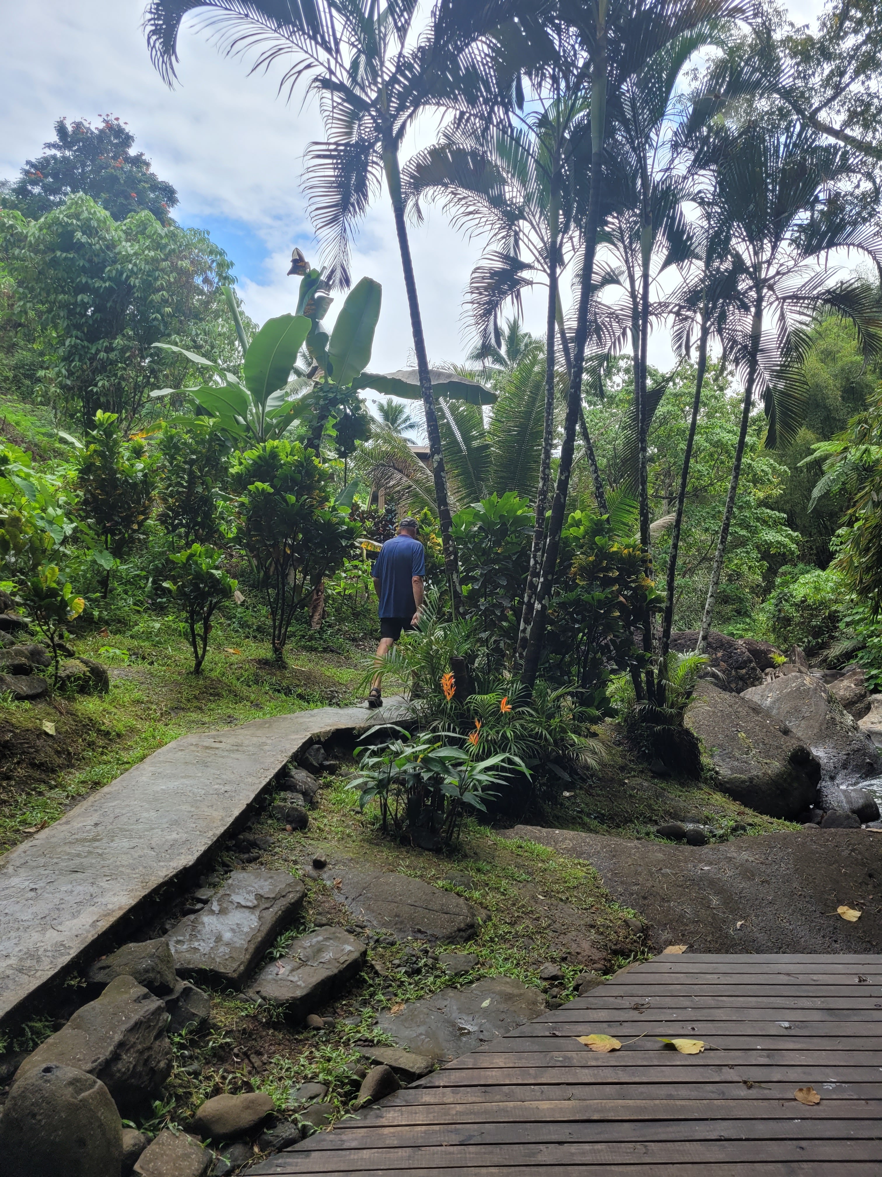Once again the staff was amazing. The trail was a little slippery especially as one was distracted by the beauty of the rain forest. They had piled up red mahogany live edge slabs that were from a 36 inch tree or more.