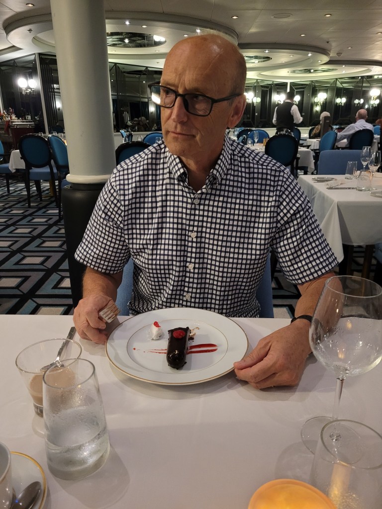 For supper tonight I had steak while the others had fish or curry chicken. Then they tortured me as we walked upstairs by the buffet with REAL food ie roast beef with mashed potatoes was the main item tonight. Darn ! While as I said I love the main dining the choices are limited and on the fancy side.