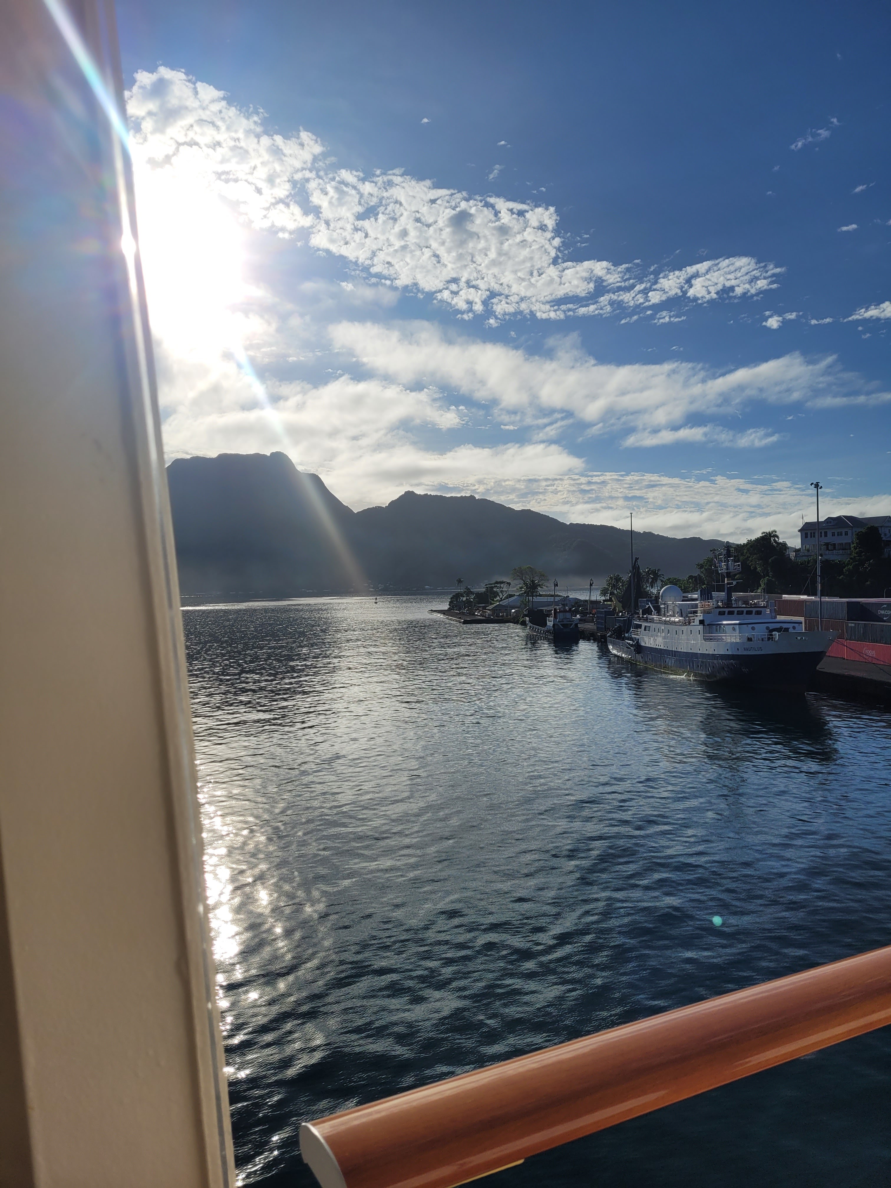 We landed 12 hours later after getting winks of sleep and lots of food. Good for prepping to take a cruise. A nice smaller airport with a traditional greeting and a shell lai presented to us. The feeling of the warm moist air when exiting is beautiful.
