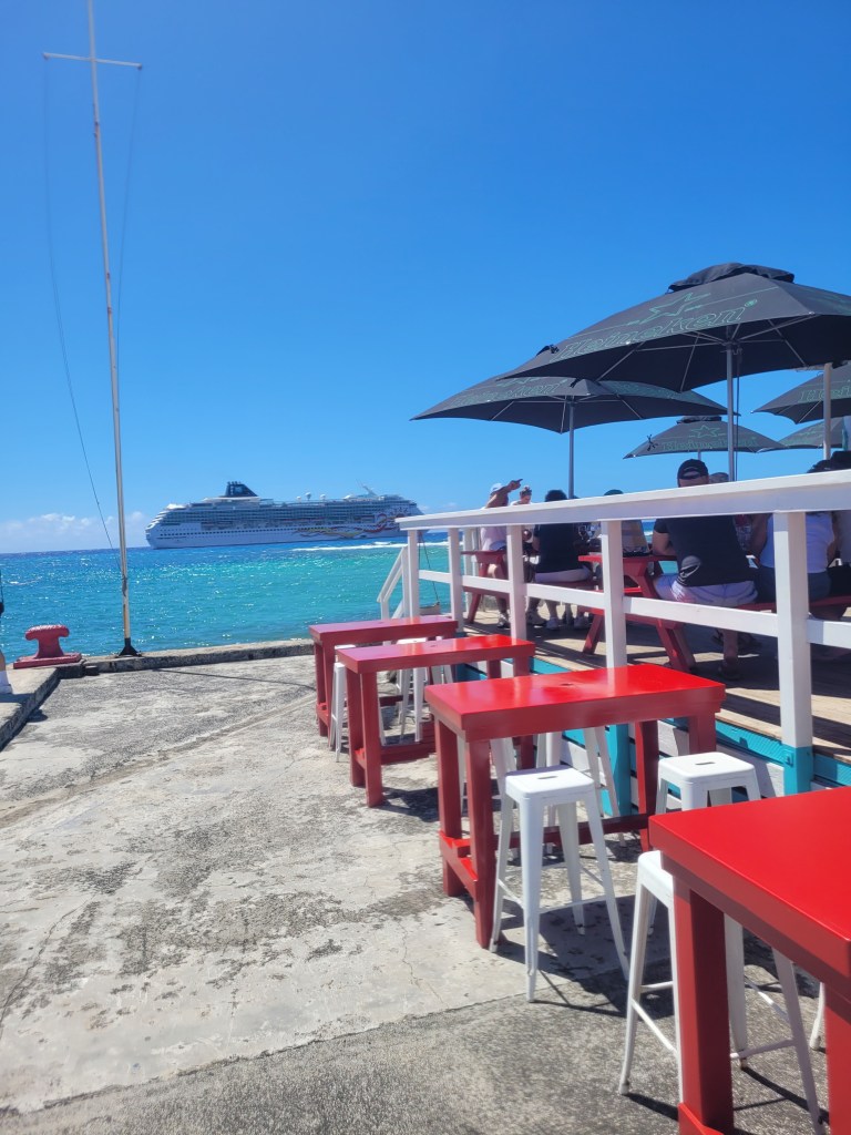 No excursions today so we just planned doing a walk about near our tender location. We had anchored a long ways out today. We got to a cool shopping plaza with some neat shops. Jackie bought some gifts for the kids. The Bone Fish restaurant had wahu fish & chips which was great and was recommended by someone we talked to. I was a nice easy walk around day.