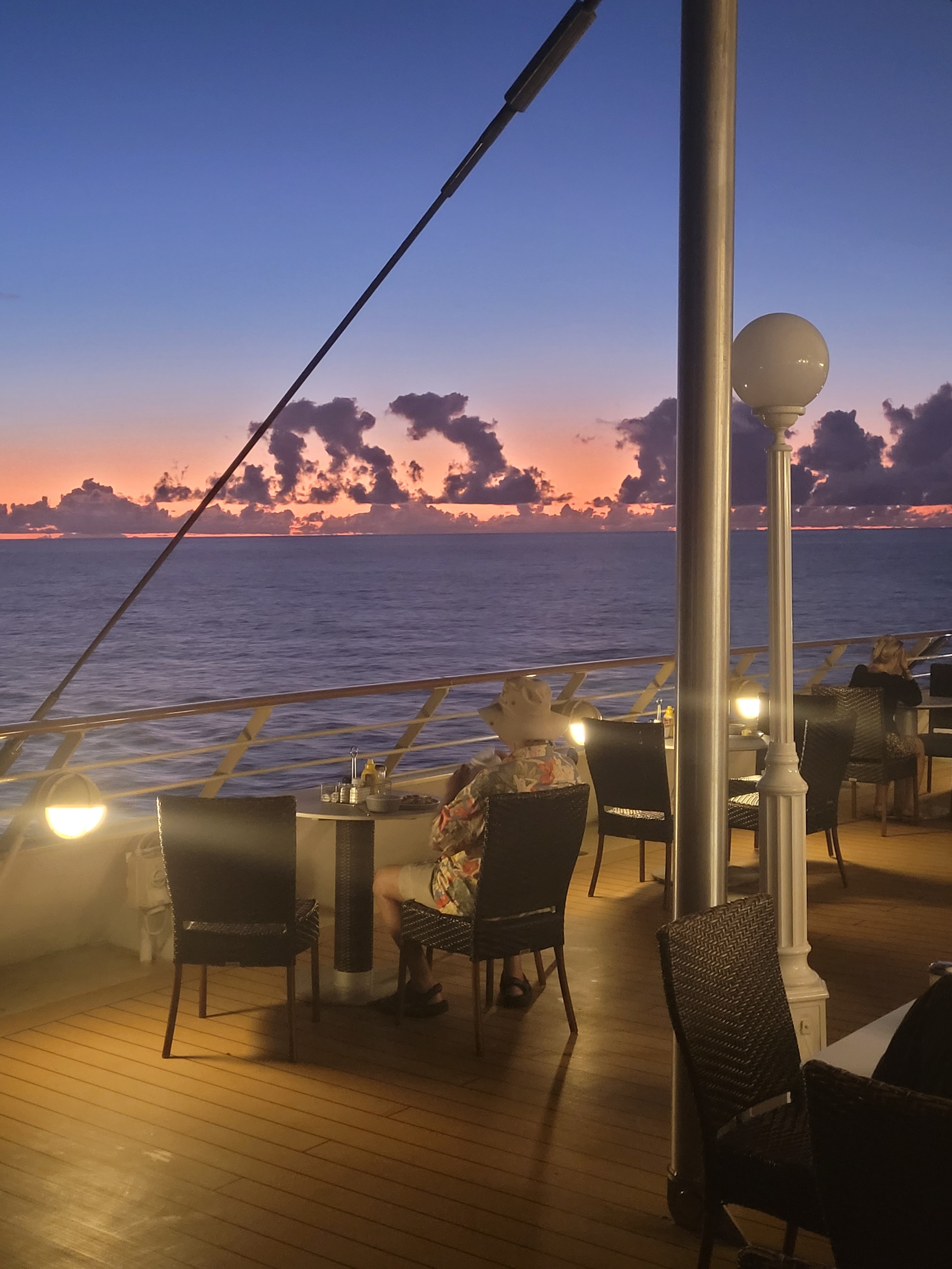 Too much eating again today as another sea day. Lots of walking around the ship. I sat outside on my patio for a long time enjoying the warmth but no sun as it was over cast.