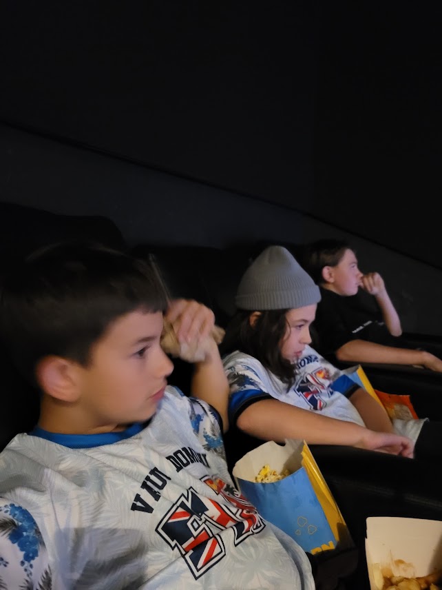 I can’t speak for everyone else but it was action packed. A love story combined with non stop action. Jackie, Jessica, Atticus, August, Jackson and I at the movie house.