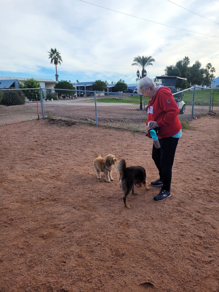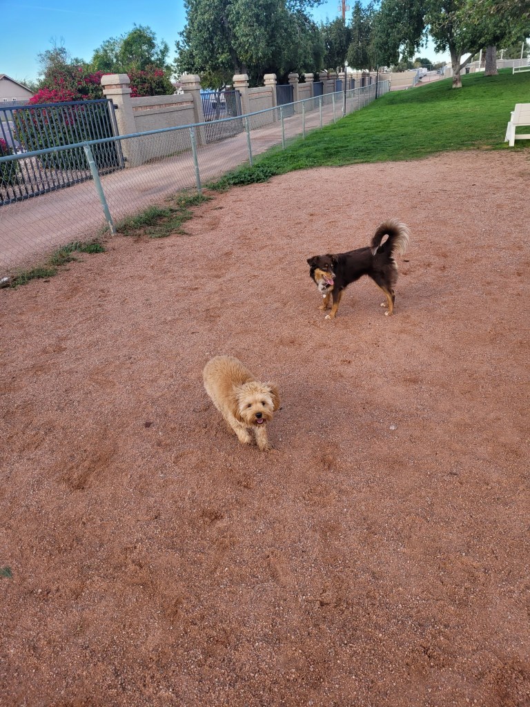 I then took Daisy back to the dog park where she had a great run around with a smaller Labadoodle. It worked the poop out of her as her schedule with the rain is all thrown off.