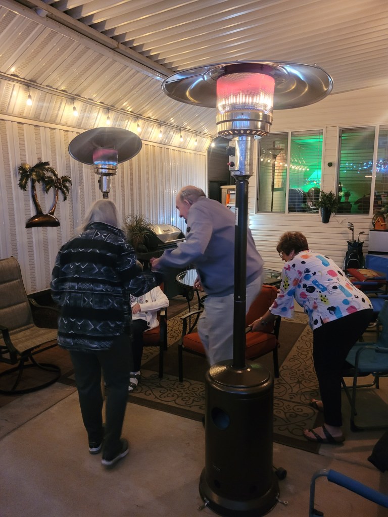 We got everything ready at Jake & Donna’s place for tonight. This preparation includes moving my patio heater to their house. The evenings are starting to cool fast now.