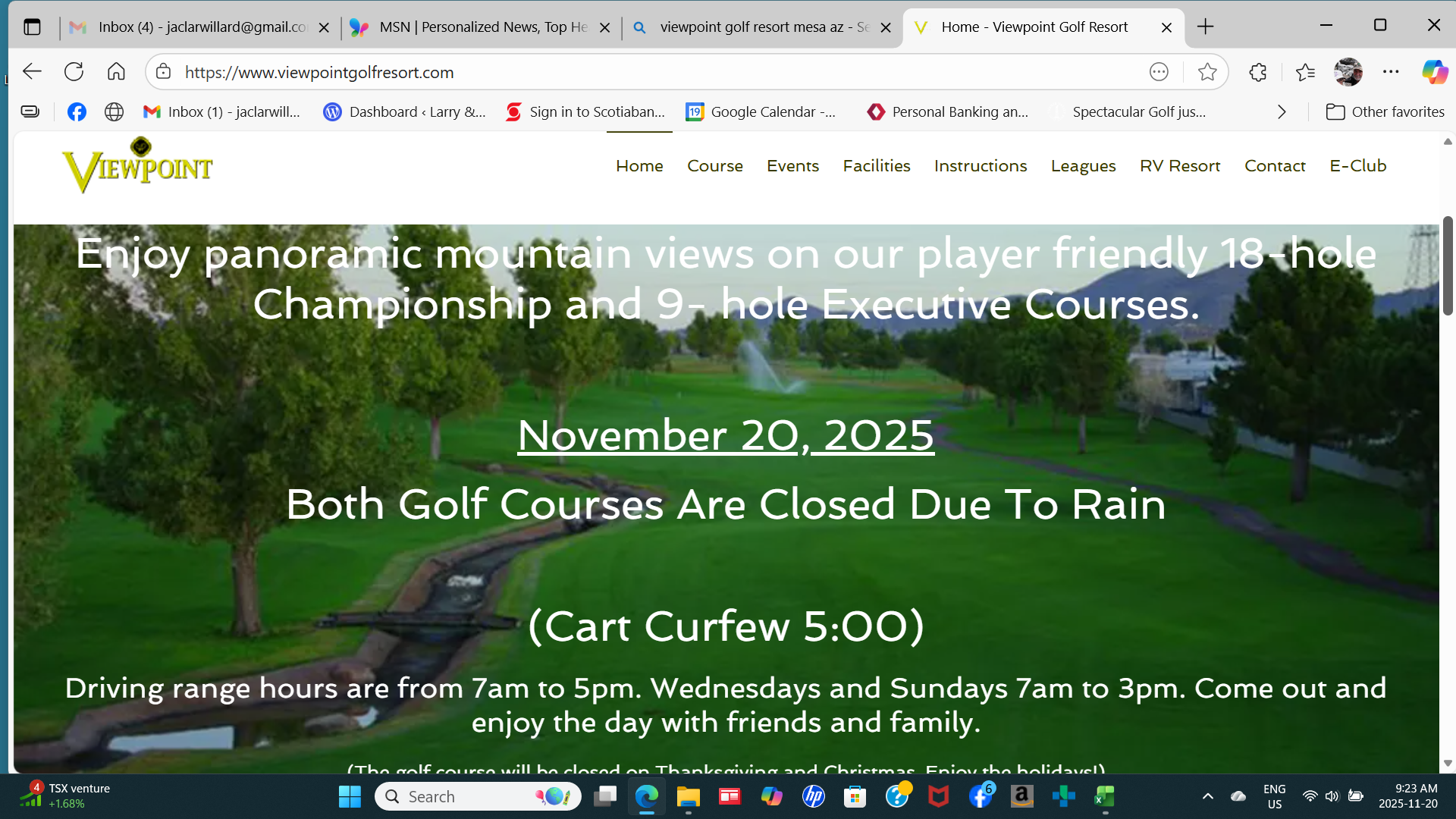 Wow, time flies by. We are heading into December already. There are only 12 more days of sunshine, warmth and golf left this year.