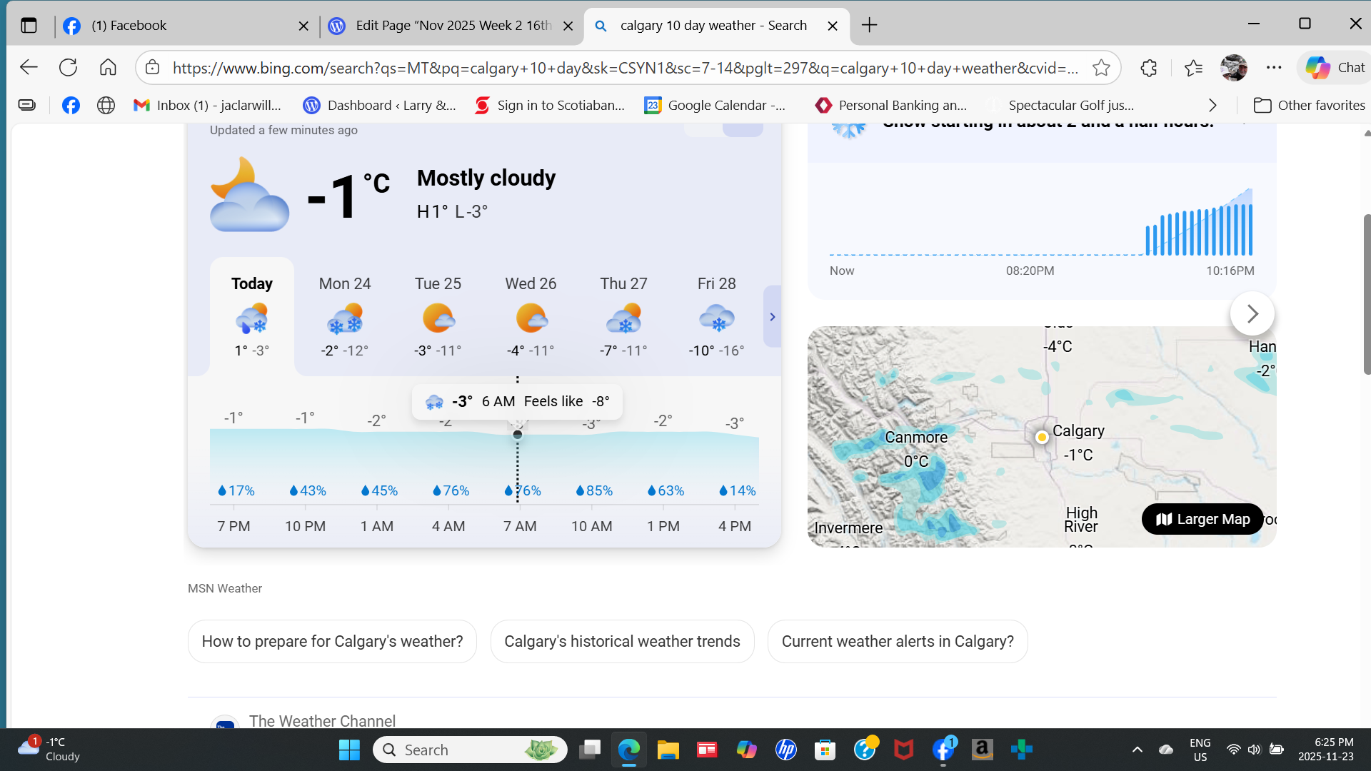 “Mercury Forecast Edmonton -1 degrees, Calgary -3 degrees, Mesa 22 degrees”