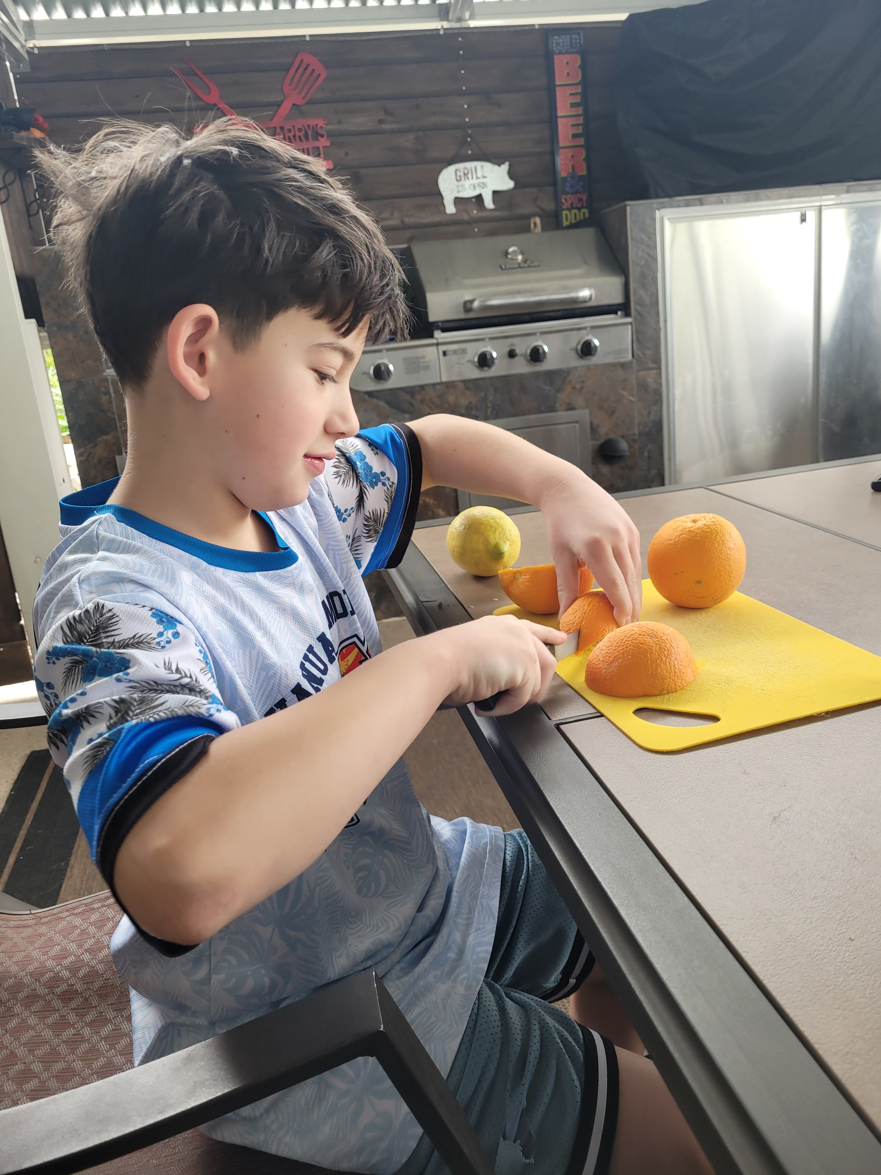 Atti experienced pulling a orange and grapefruit off the trees and having them. A bit too much sugar but he loved him. He didn’t eat the lemon. LOL