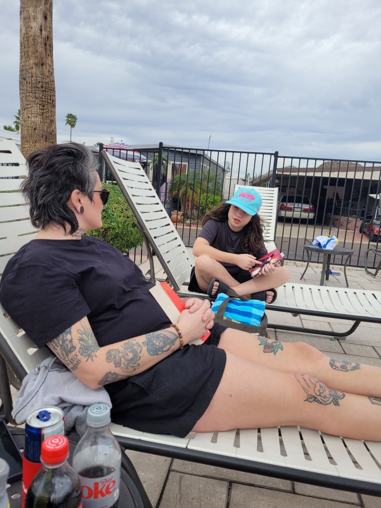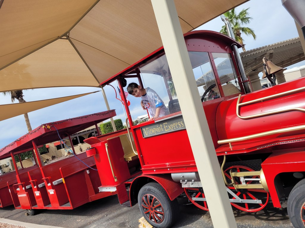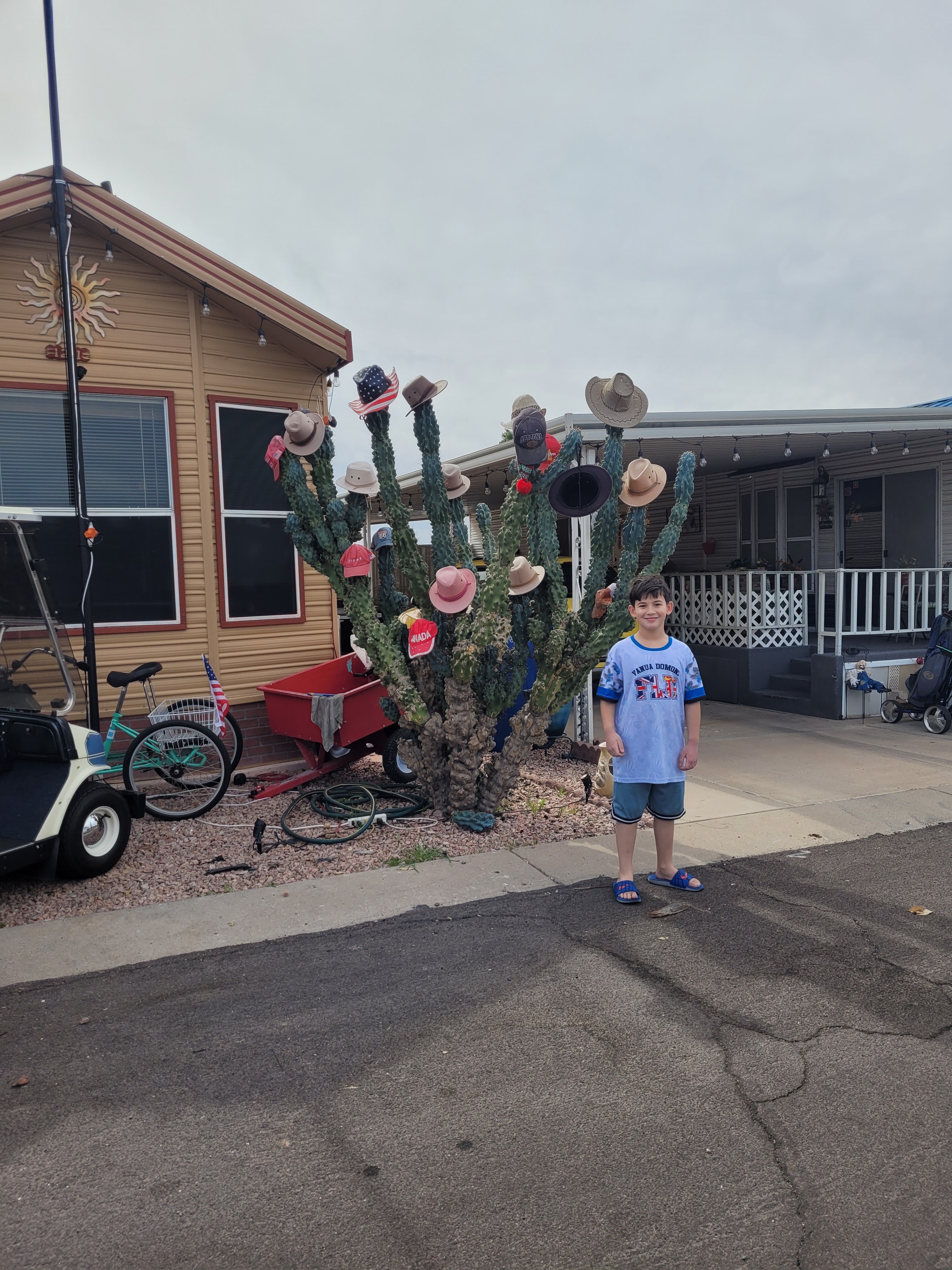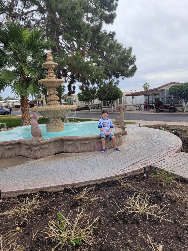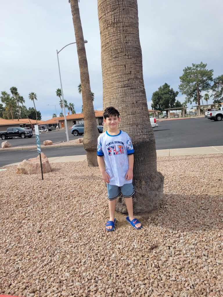 The boys had a blast and loved the desert atmosphere. The Cactus are in full bloom.