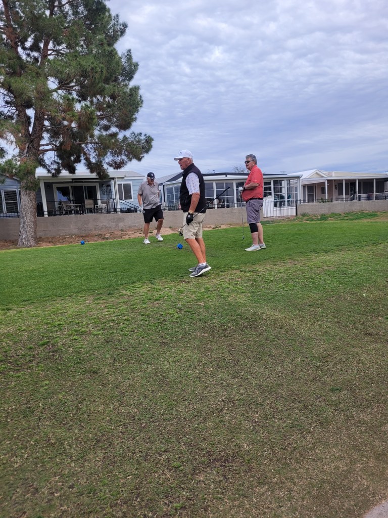The plane was only slightly delayed but we did not get home and to bed until 1 am. A small world happens again as sitting by the luggage carousal we run into Sandy. It turns out our friend George, who used to own Lealta, was on the same flight. He was arriving with our family. I haven’t seen him for a few years. I will say he looks younger now than before so good on him. A nice quick visit knowing we will be golfing the next day together. Welcome to AZ.
