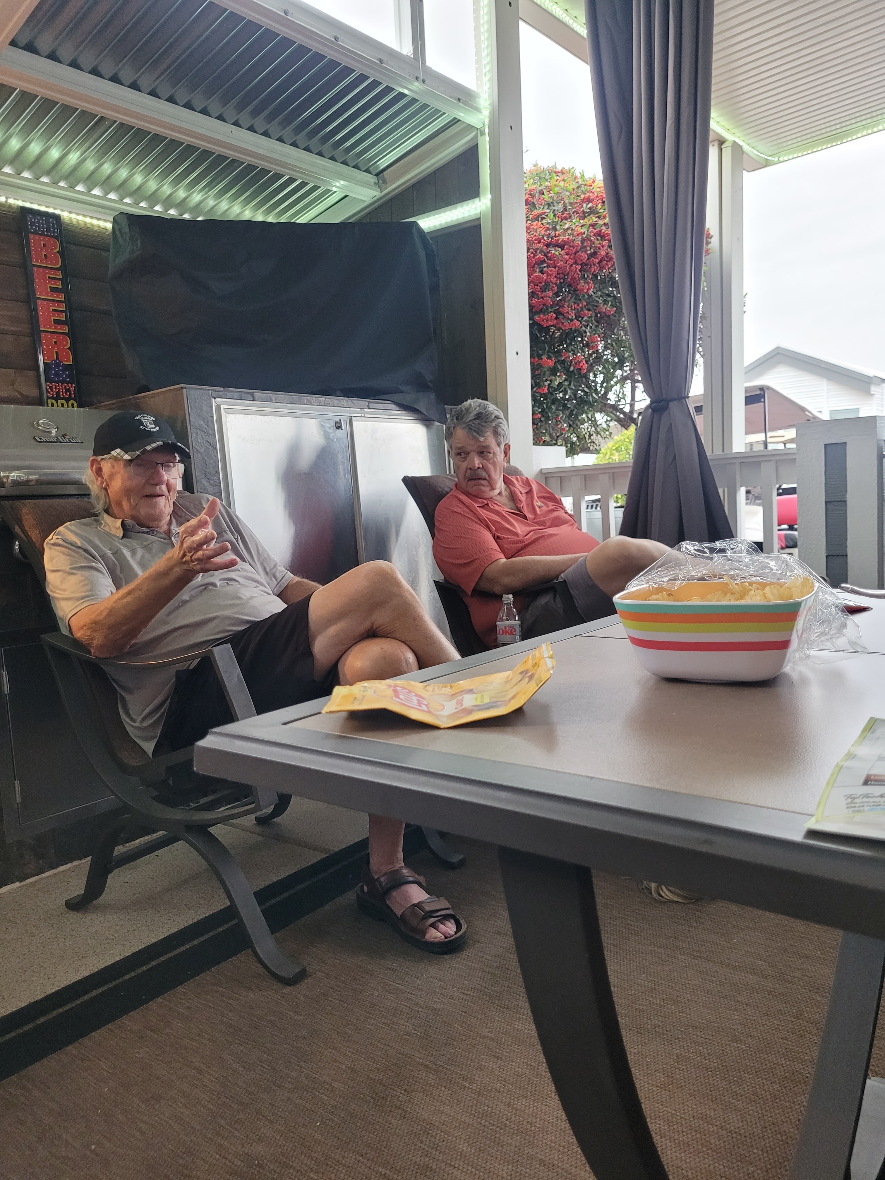 As soon as my golf gathering ended we whipped up to Fat Willy’s for burger night. The first time sitting on the patio at Fat’s this year. 24 ounce beer mugs go great with burgers. Nice that Jessica loves the same.