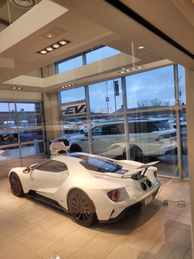 One my way out I notice a special car in the showroom but with plates on so most likely the owners car. It is a new 2025 Ford GT40. This sell for $385,000. Paid for by fake charges to their customers. Very nice car though. Turns out after the fact it is special edition car worth 1.2 million.