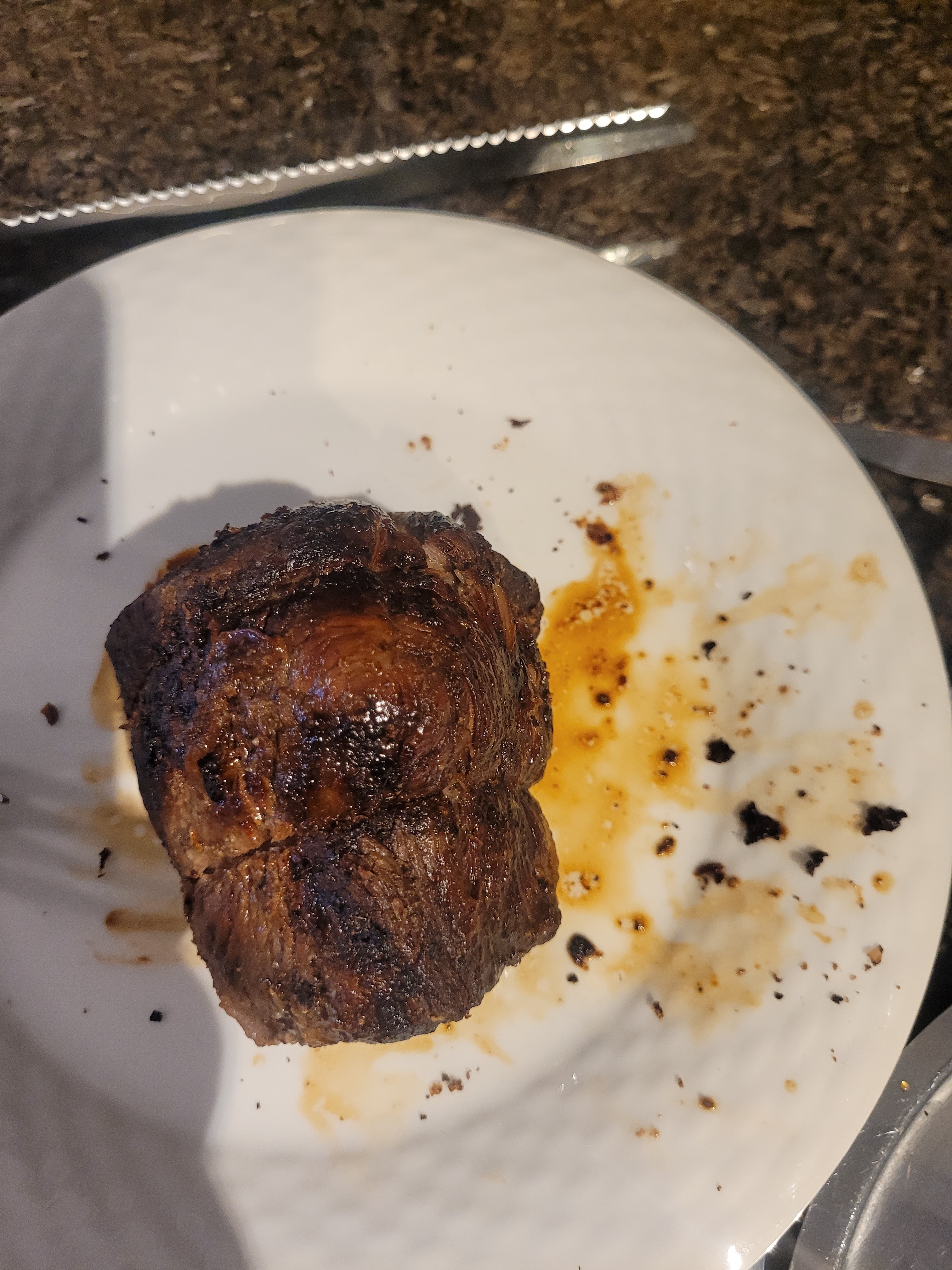 I have always said that with any job the tools to get it done make all of the difference. The same goes for cooking. Tonight was a wonderful supper. Beef roast tip, mashed potatoes and garden salad. The air fryer is KING. I preheated and for 10 minutes seared it. Then dropped the temperature and brought it to 160 degrees internal. All done in 40 minutes which is unheard of prior to air fryers. Between the fryer and the temperature gauge to get the cooking right it made it easier, Juicy, slight pink and crusted wonderfully. With the sides it was one great tasting supper. Finding a 1 pound beef roast was perfect.