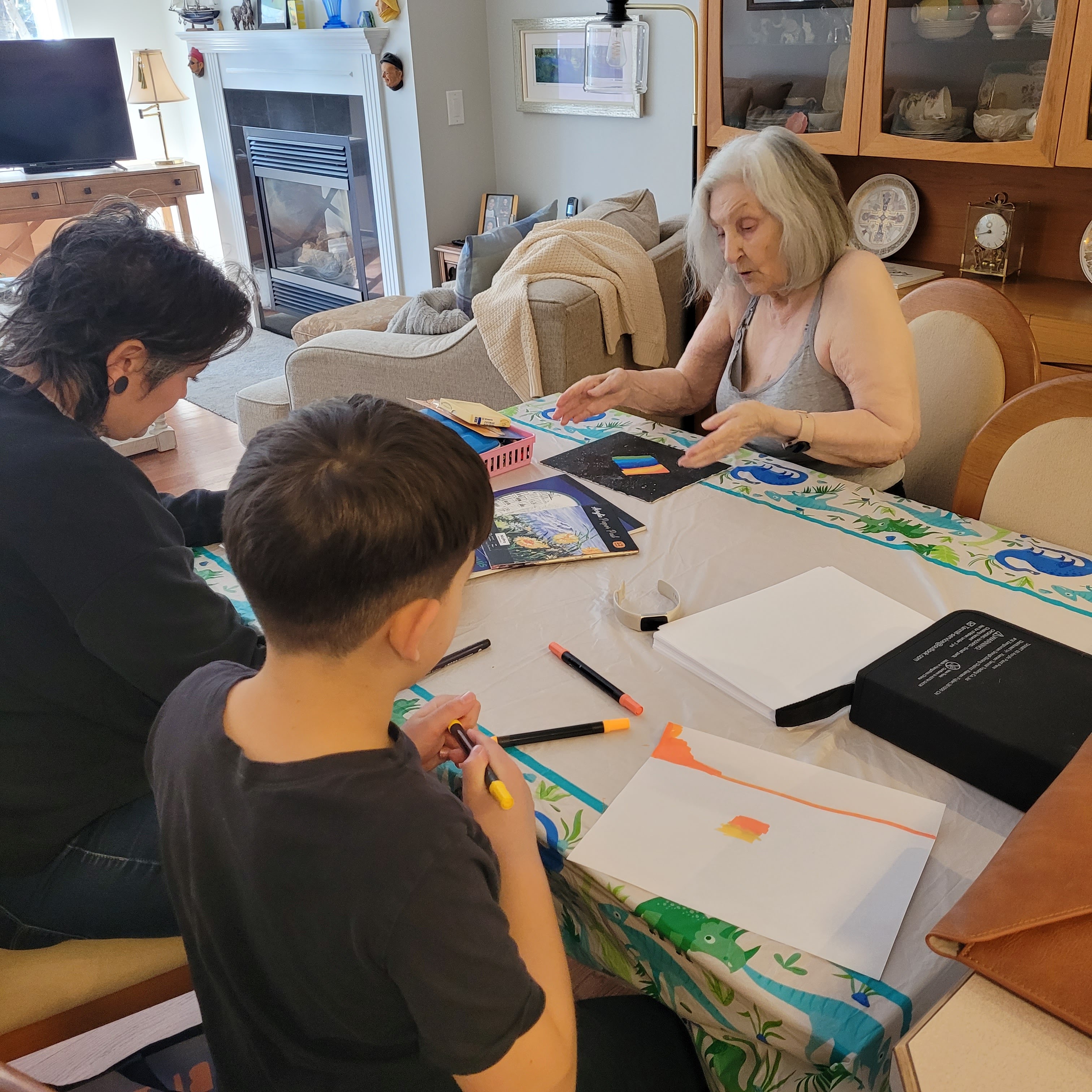 Jess & Audrey along with Atticus having a blast with art, Atticus made Audrey a wonderful painting.