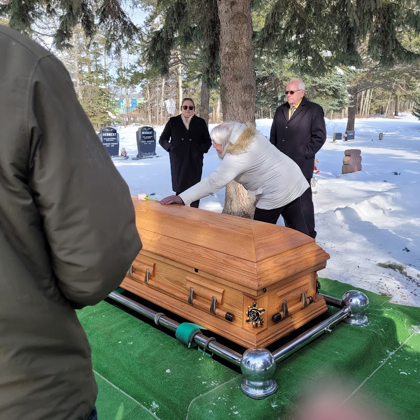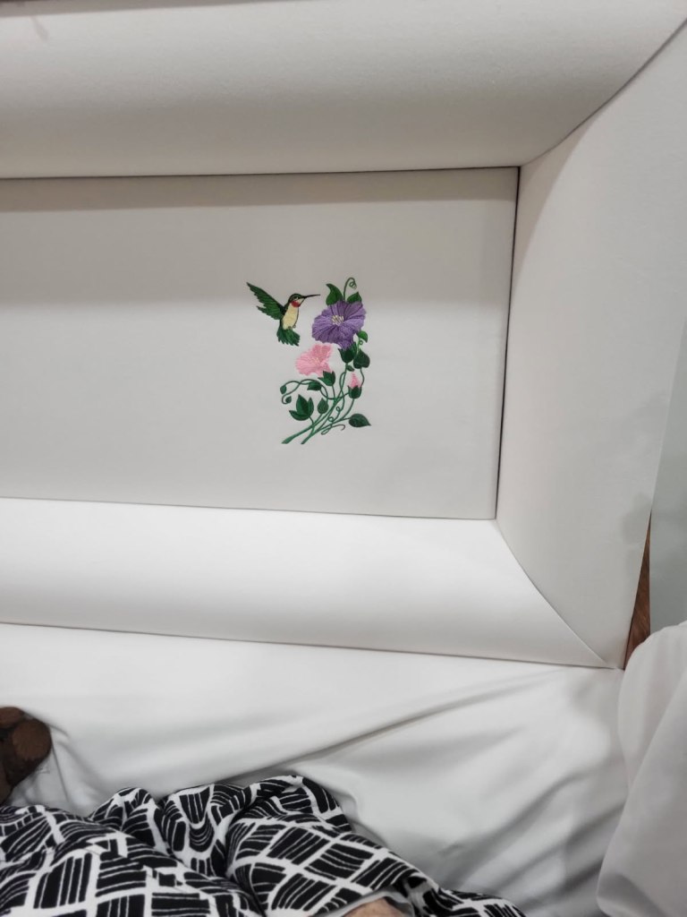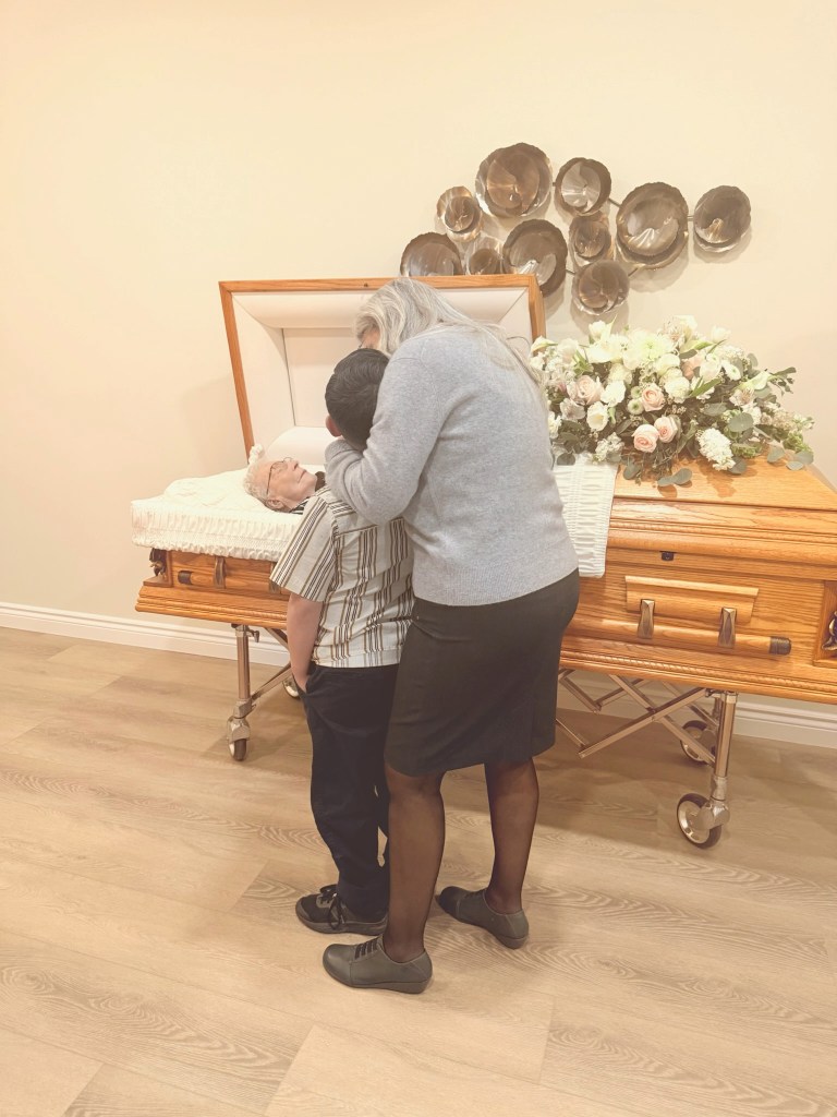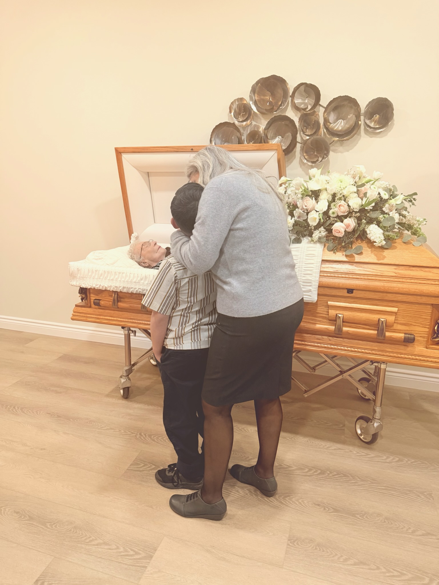 People arrived quickly. The family gathered in a private room to say their final goodbyes. The funeral home had done an incredible job — the makeup, the glasses, the clothes. She looked like herself. If she could have seen it, she would have given it a thumbs up, no hesitation.