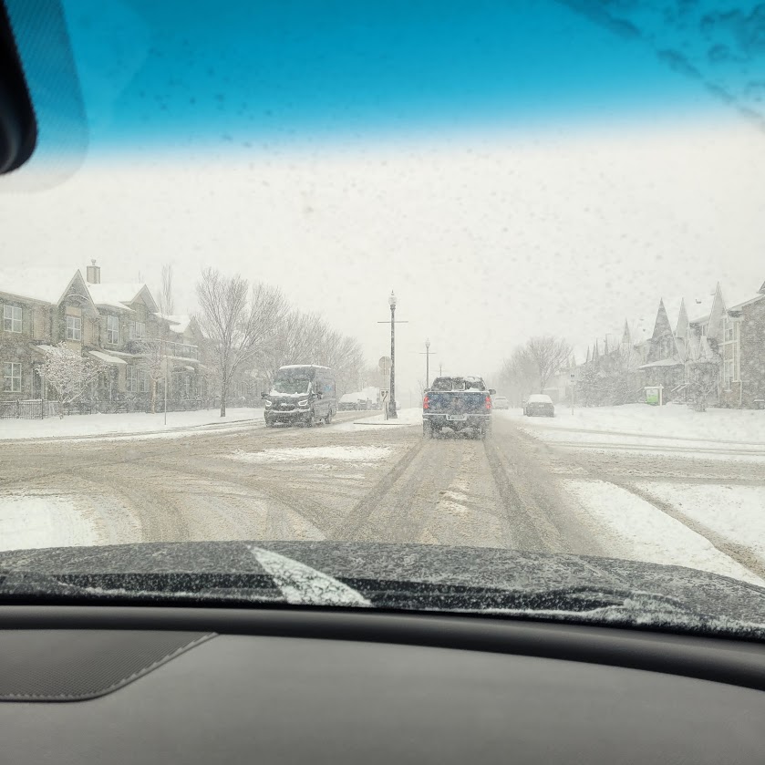 And just like that one hour later the storm is over. I have a golf game booked for Friday so the weather better smarten up. LOL The temperatures today are hovering around freezing or slightly above which makes the roads a little more slippery. But very easy to manage.